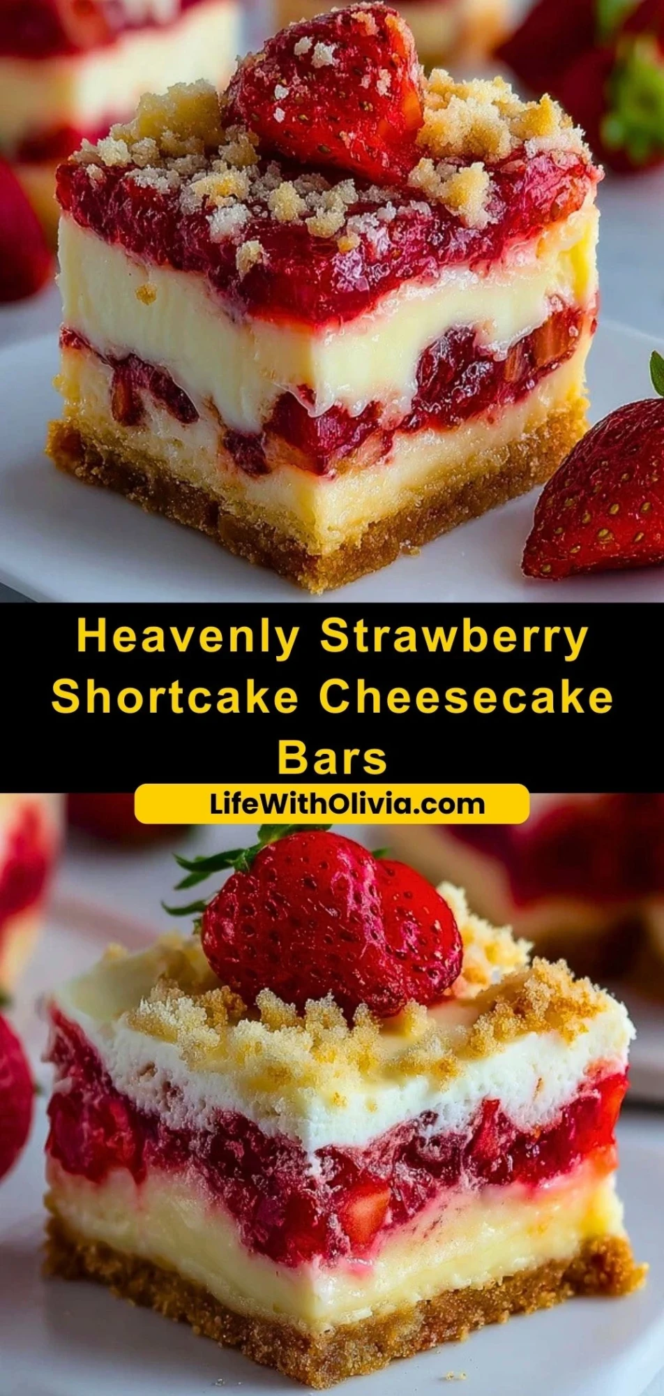 Heavenly Strawberry Shortcake Cheesecake Bars