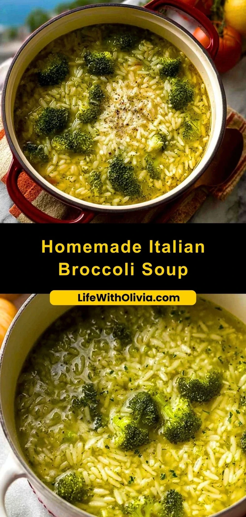 A bowl of Homemade Italian Broccoli Soup is more than just comforting; it’s deeply nourishing and packed with simple, wholesome ingredients. This traditional Italian dish brings the essence of rustic home cooking with every spoonful—velvety broth, tender broccoli florets, and soft orzo pasta that turns each bite into a hug from the inside.