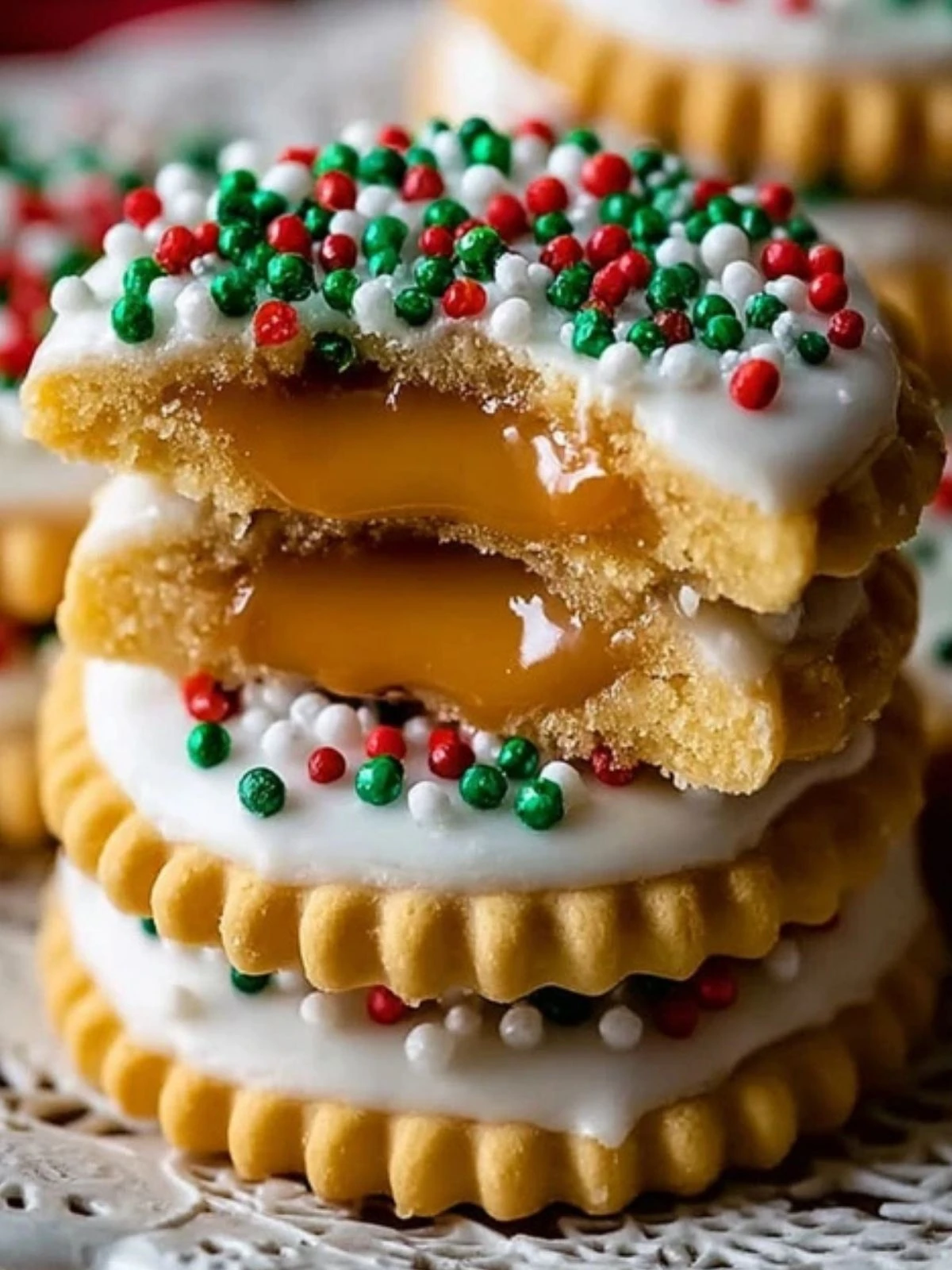 These Irresistible Caramel Ritz Cracker Christmas Cookies are the ultimate sweet-and-salty no-bake holiday treat. Buttery crackers sandwich a smooth, creamy caramel filling, dipped in silky white chocolate and topped with festive sprinkles. Perfect for cookie trays, edible gifts, or a cozy evening snack by the fire.