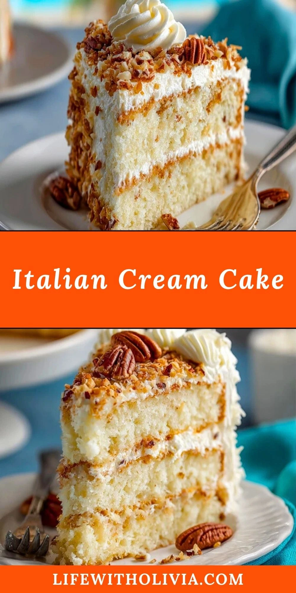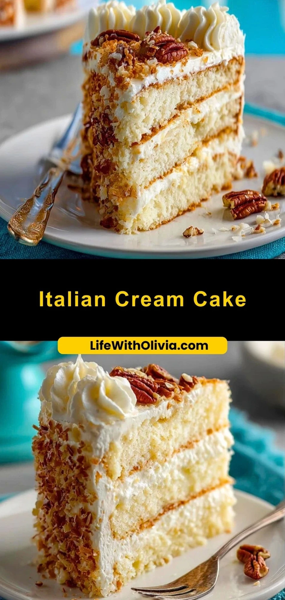 Lush, rich, and undeniably Southern, Italian Cream Cake is a dream dessert that never fails to impress. Each forkful is a harmony of textures: soft, fluffy layers of vanilla cake with a hint of coconut, a tangy cream cheese frosting, and a gentle crunch from toasted pecans. It’s the kind of cake that makes celebrations feel extra special, whether it’s a holiday gathering or a quiet Sunday afternoon indulgence.
