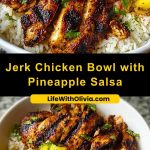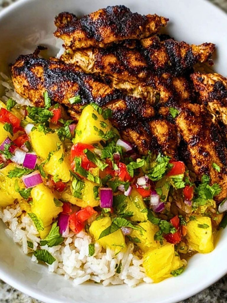 Take your taste buds on a tropical getaway with this vibrant Jerk Chicken Bowl with Pineapple Salsa. Perfectly spiced and flame-grilled chicken is served over a fluffy bed of rice and paired with a juicy, tangy pineapple salsa bursting with bold island flavor. It’s a complete meal that hits all the right notes: spicy, sweet, savory, and refreshing.
