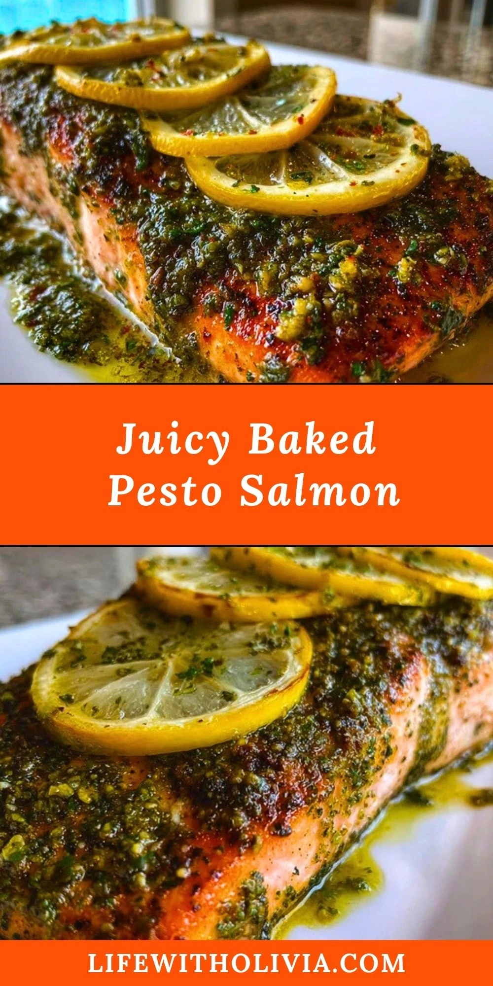 Juicy Baked Pesto Salmon is an easy and elegant dish that’s perfect for any night of the week. Fresh salmon fillets are smothered in herby basil pesto, topped with lemon slices, and baked until perfectly flaky. It’s full of bright, rich flavor and pairs wonderfully with light sides or hearty grains.