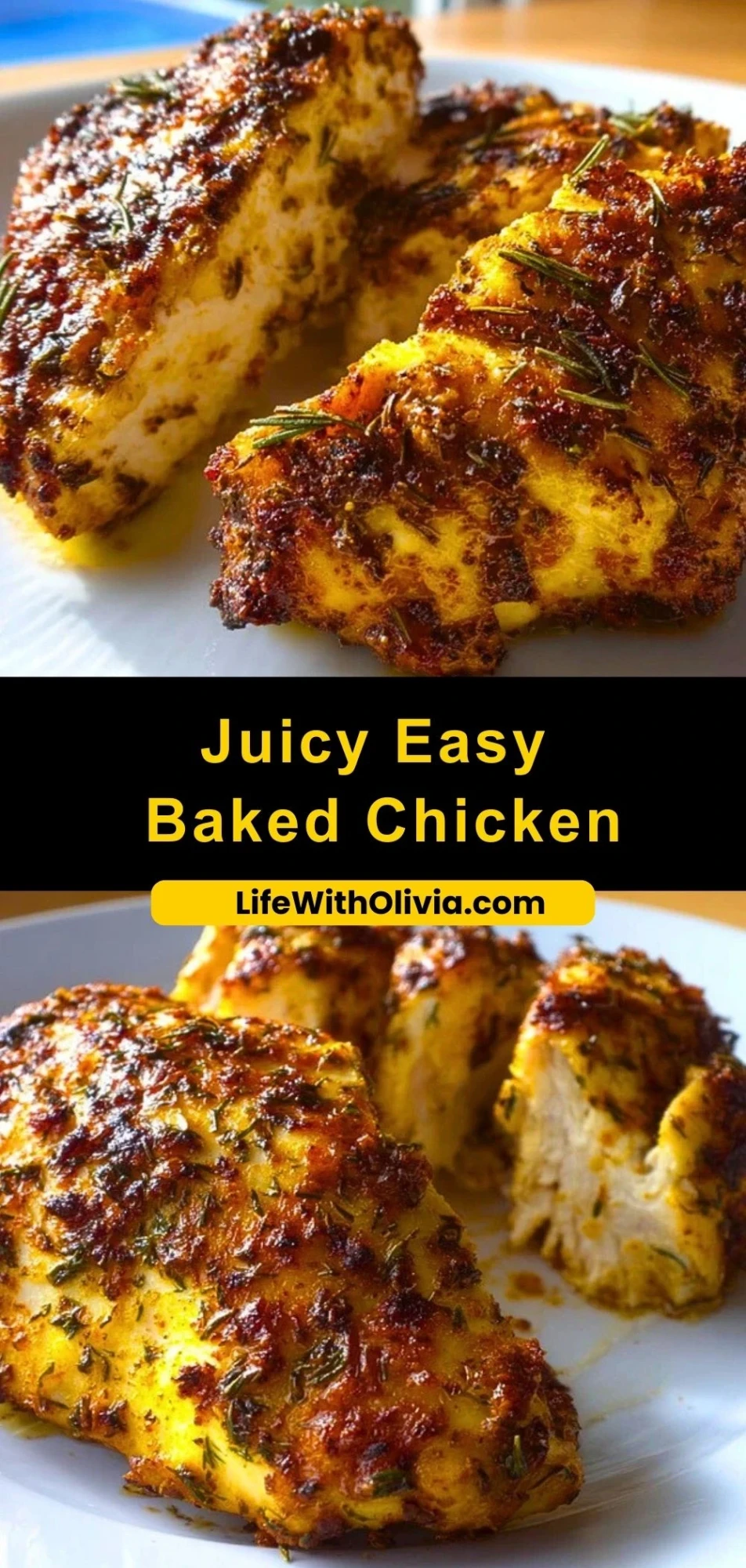 Moist, flavorful, and wonderfully simple, this Juicy Easy Baked Chicken is the answer to weeknight dinner stress. With a golden crust of herbs and spices that lock in all the moisture, this dish is both foolproof and crowd-pleasing. Whether you’re cooking for picky eaters or meal prepping for the week, this recipe delivers tender chicken every time without fail.