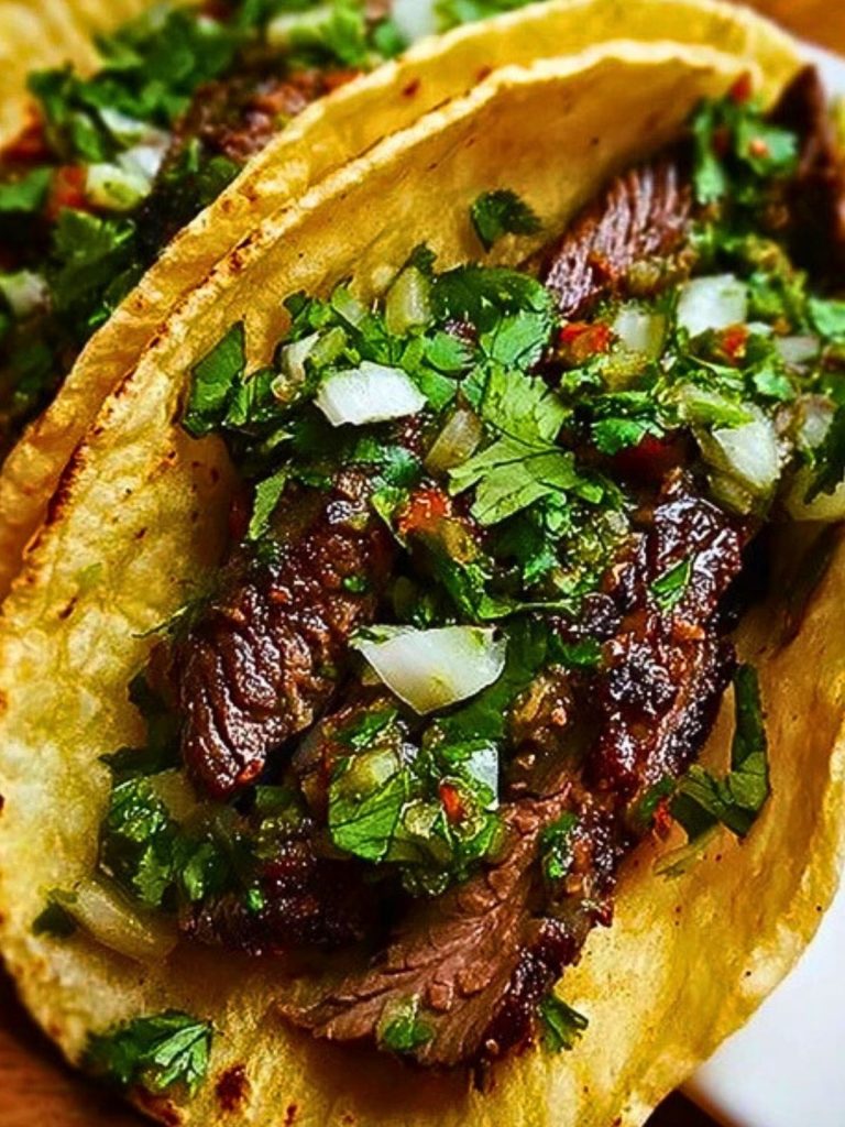If you’re craving something bold, fresh, and bursting with flavor, these Lime & Cilantro Steak Tacos are your answer. Juicy slices of marinated steak nestled in warm corn tortillas and topped with a zesty mix of chopped onions and fresh cilantro make every bite irresistibly satisfying. The blend of lime’s acidity and cilantro’s earthy aroma elevates the steak to taco perfection.
