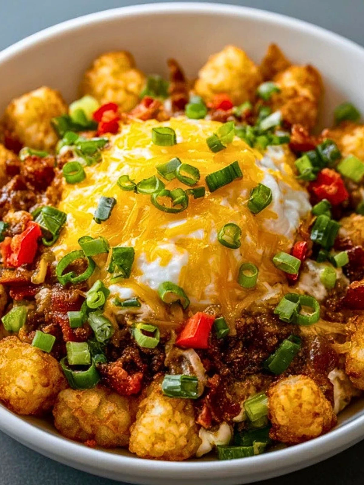 Golden, crispy tater tots piled high with savory breakfast favorites—this loaded tater tot breakfast bowl is the kind of meal that makes mornings feel indulgent. Each bite delivers a mix of crunchy potatoes, rich melted cheese, fluffy eggs, and hearty toppings that come together in one satisfying bowl.