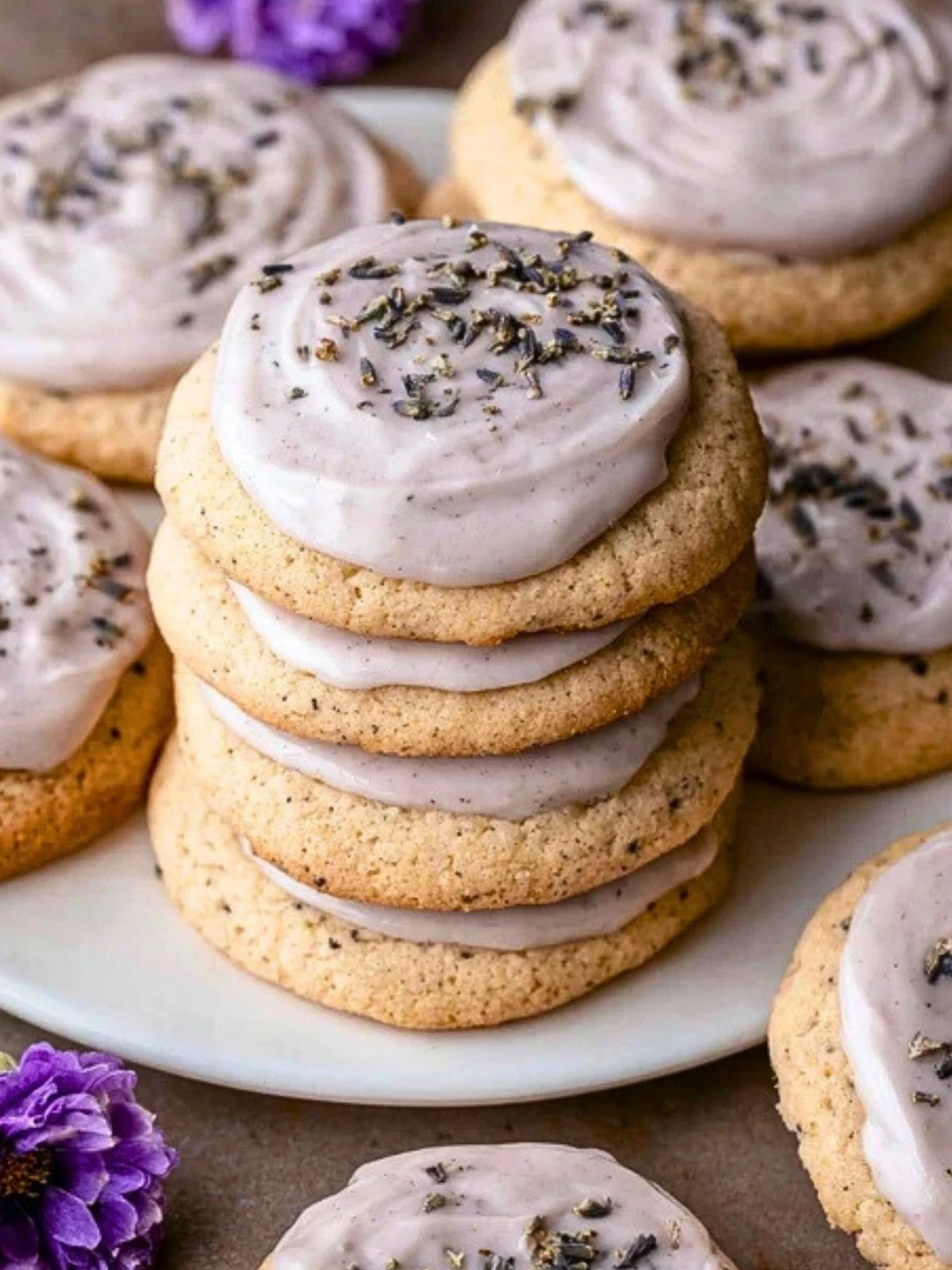 Once cookies are cool, spread glaze generously over the tops. Sprinkle with additional dried lavender if desired.