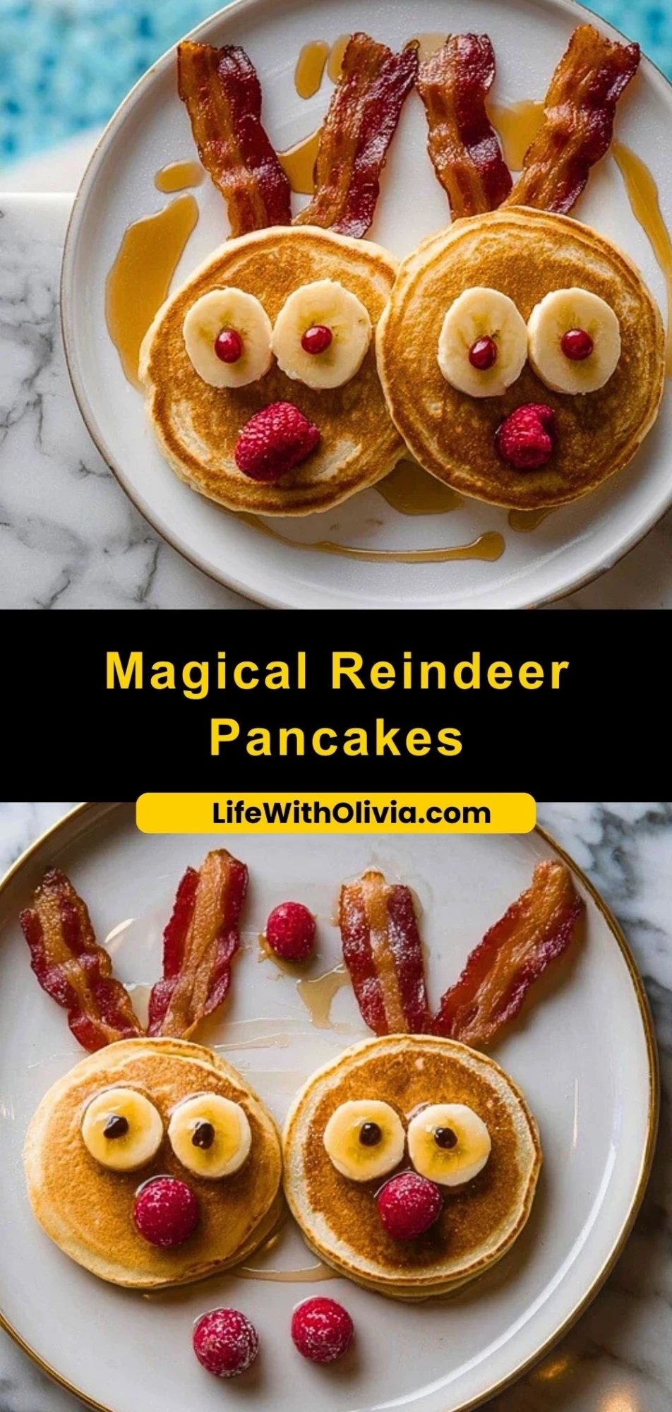 Bring festive fun to your breakfast table with these Magical Reindeer Pancakes! Fluffy pancakes are transformed into reindeer faces with banana eyes, raspberry noses, and crispy bacon antlers. This recipe is perfect for holiday mornings or weekend surprises and is sure to delight both kids and adults alike.