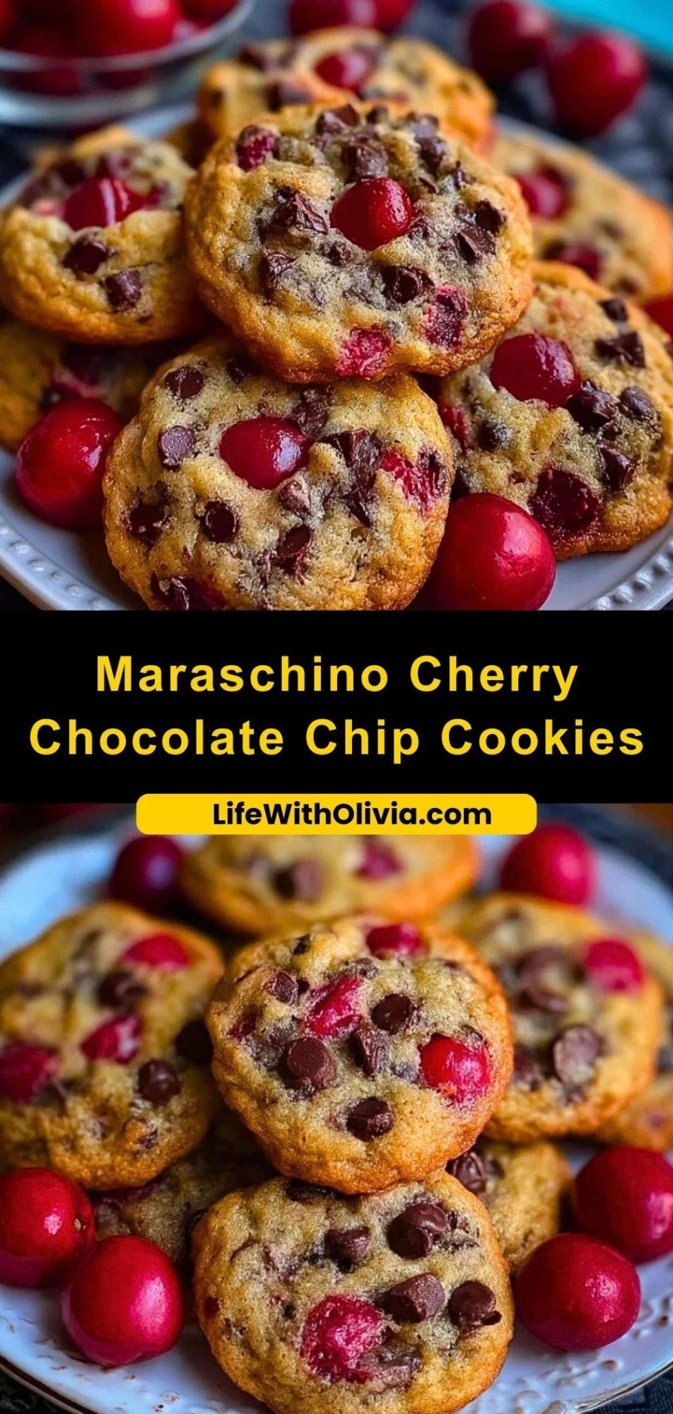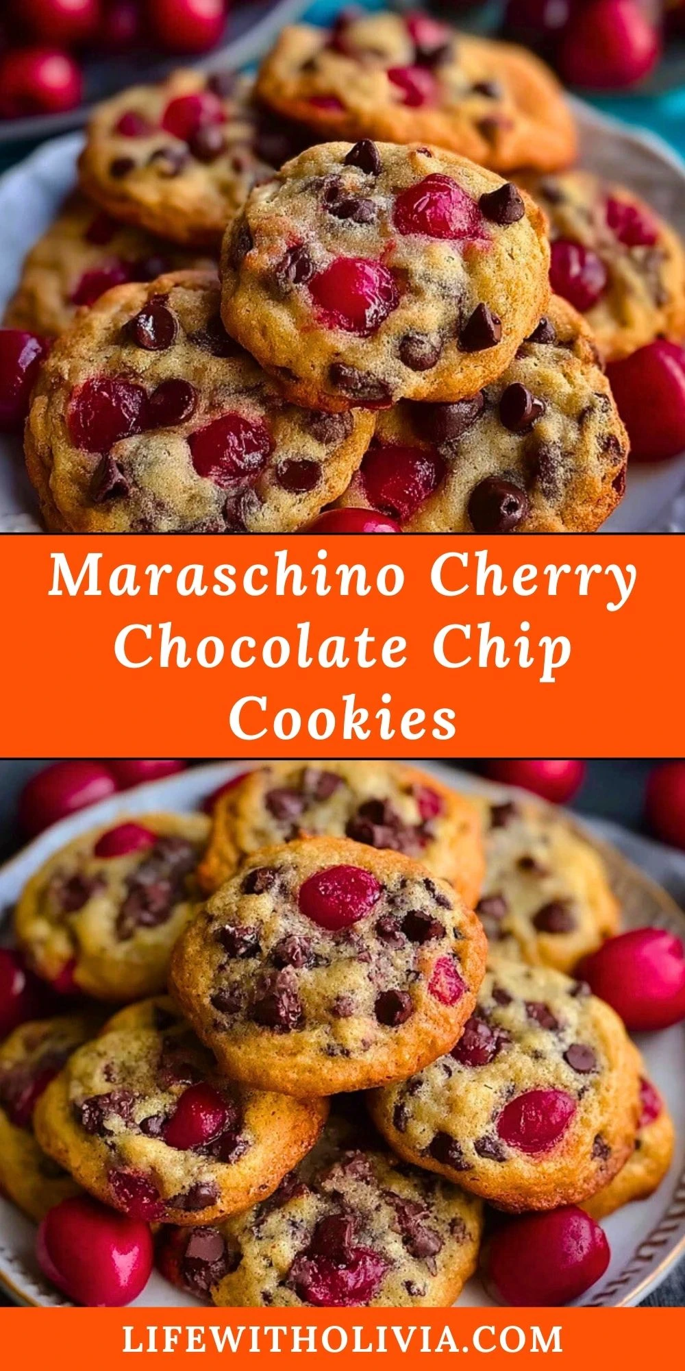 Keywords: cookies, chocolate chip, cherry cookies, maraschino cherry dessert, easy recipe