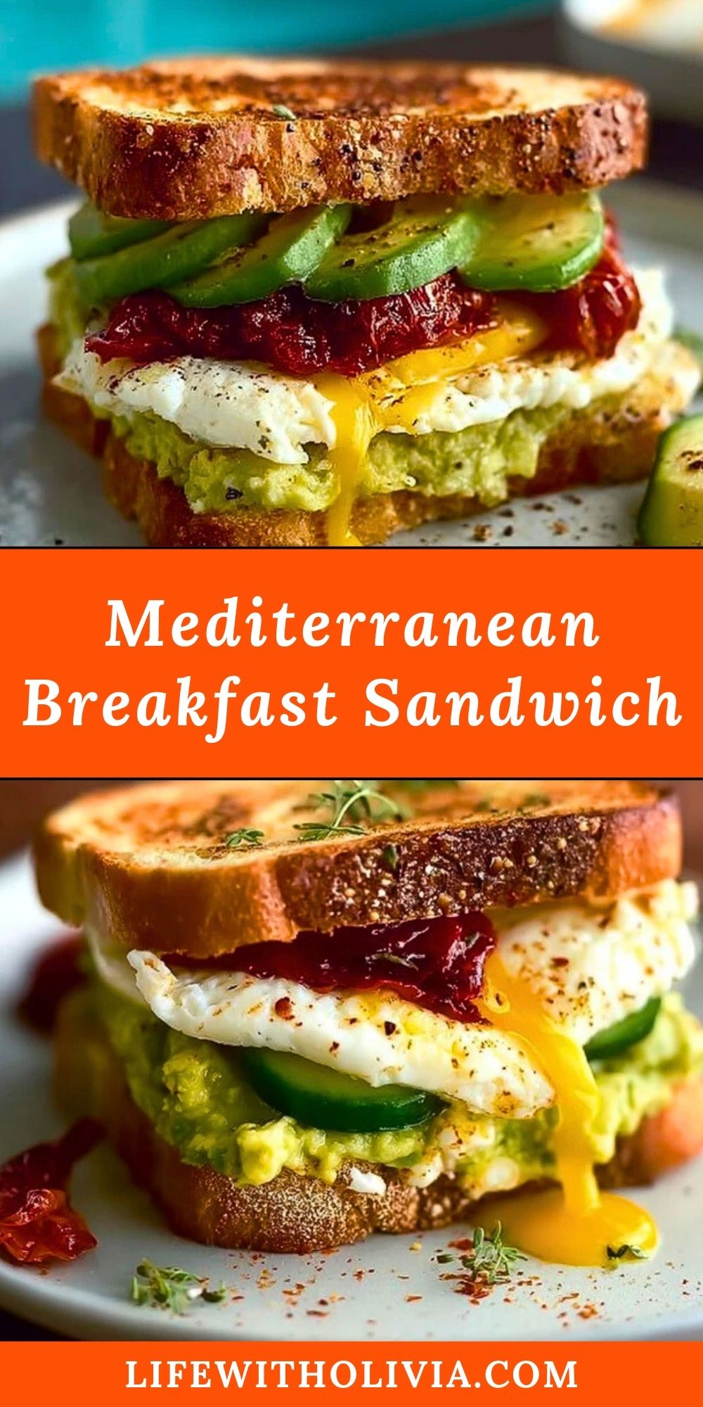 The Mediterranean Breakfast Sandwich is a vibrant, satisfying morning meal layered with smashed avocado, a perfectly cooked egg, sun-dried tomatoes, and peppery greens—all hugged between two slices of golden toasted bread. It’s easy to prepare, packed with healthy fats and protein, and brings the bold, fresh flavors of the Mediterranean straight to your plate.