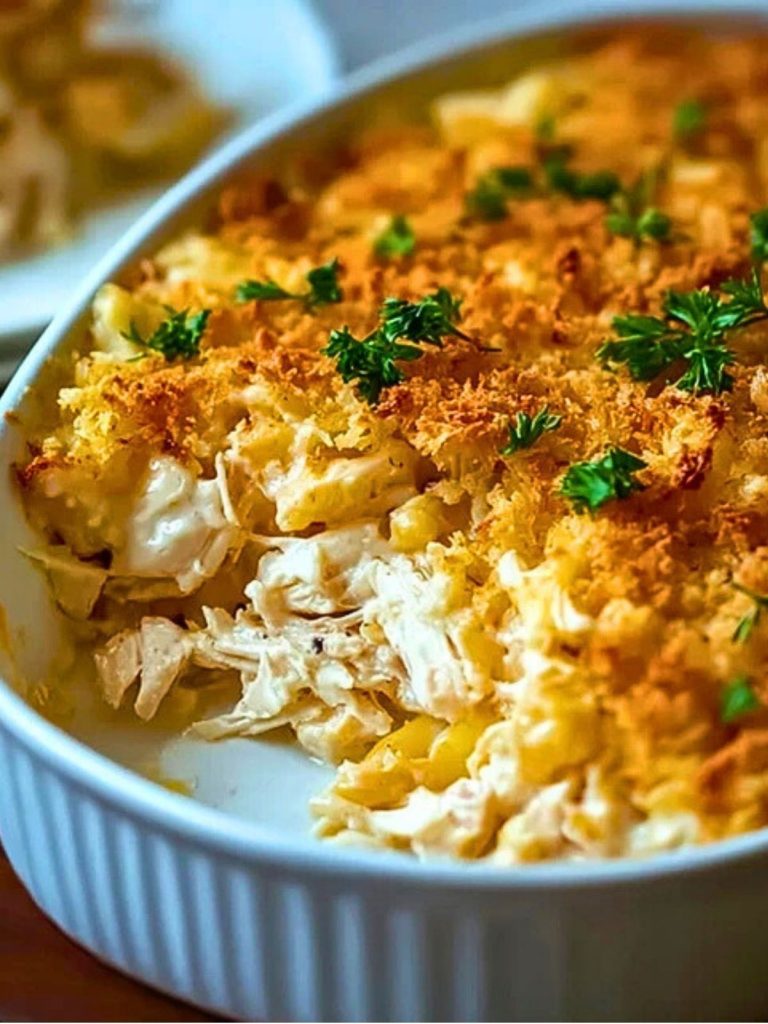 Rich, creamy, and full of comforting flavor, this Million Dollar Chicken Casserole is exactly what weeknight dinners crave. It’s the kind of dish that turns simple pantry staples into something extraordinary. With shredded chicken coated in a luscious cream cheese mixture, a buttery cracker topping, and gooey melted cheese throughout, this recipe lives up to its “million dollar” name without a million ingredients.
