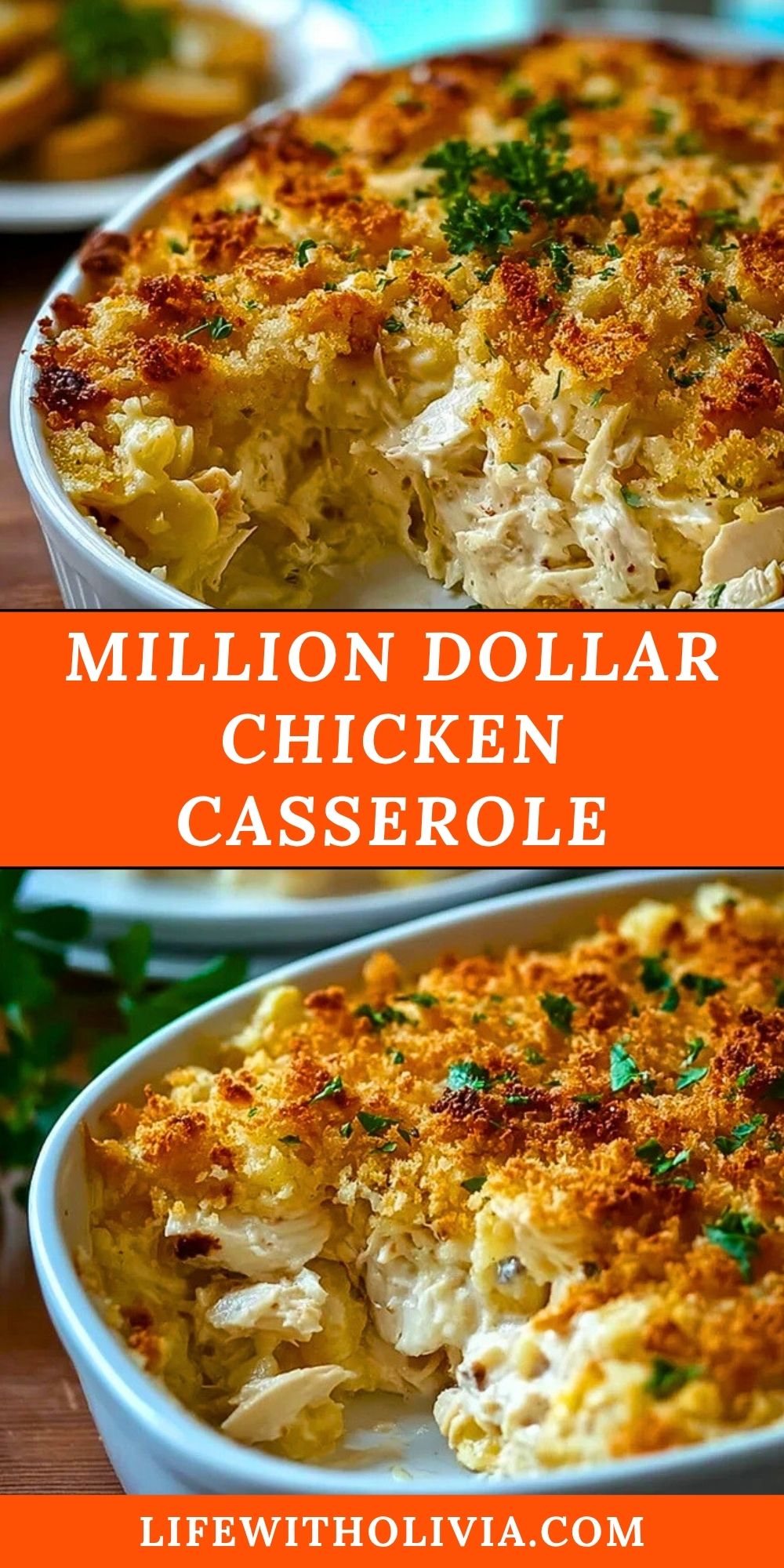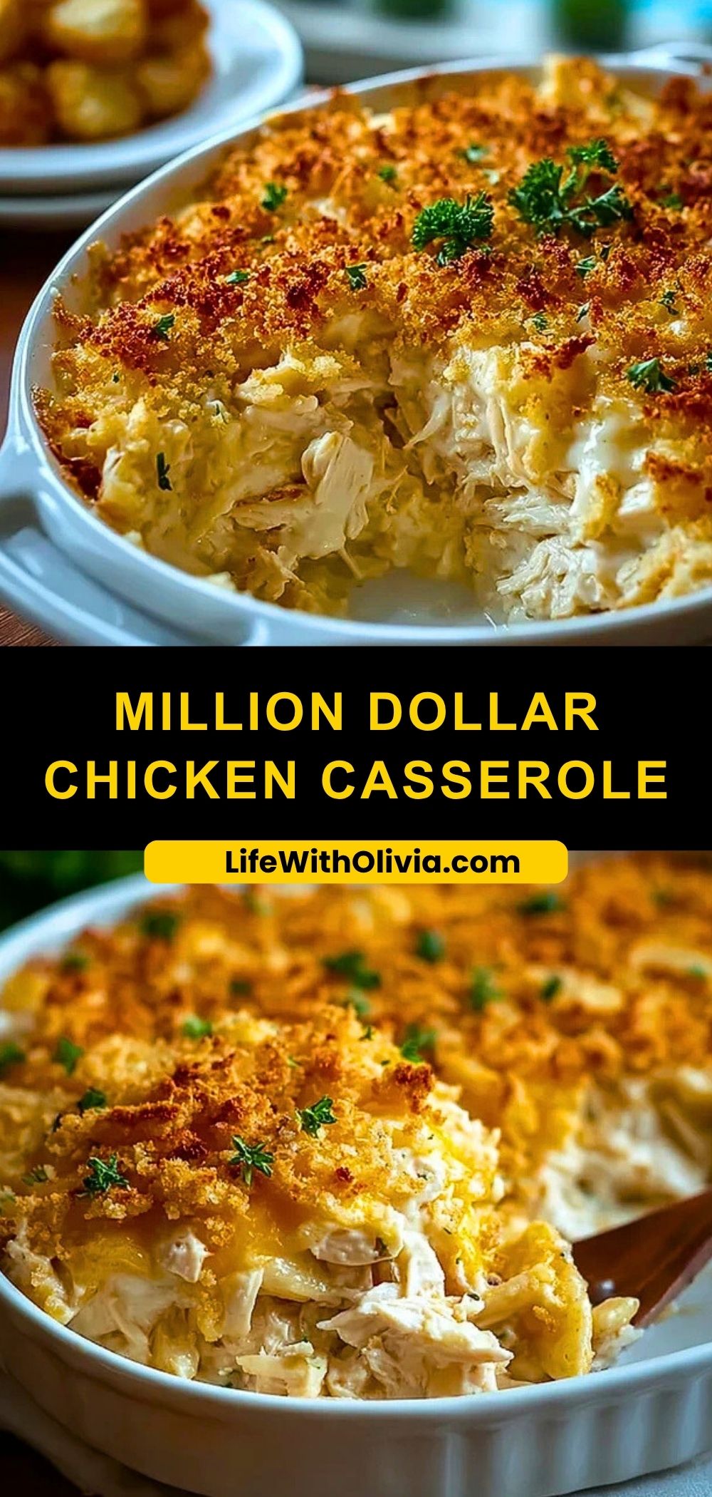 Million Dollar Chicken Casserole is the ultimate comfort dish—rich, creamy, cheesy, and topped with a buttery cracker crust. It’s an easy, satisfying weeknight dinner or meal prep solution that feels indulgent without requiring much fuss. With simple pantry ingredients and rotisserie chicken, this casserole is as convenient as it is delicious.