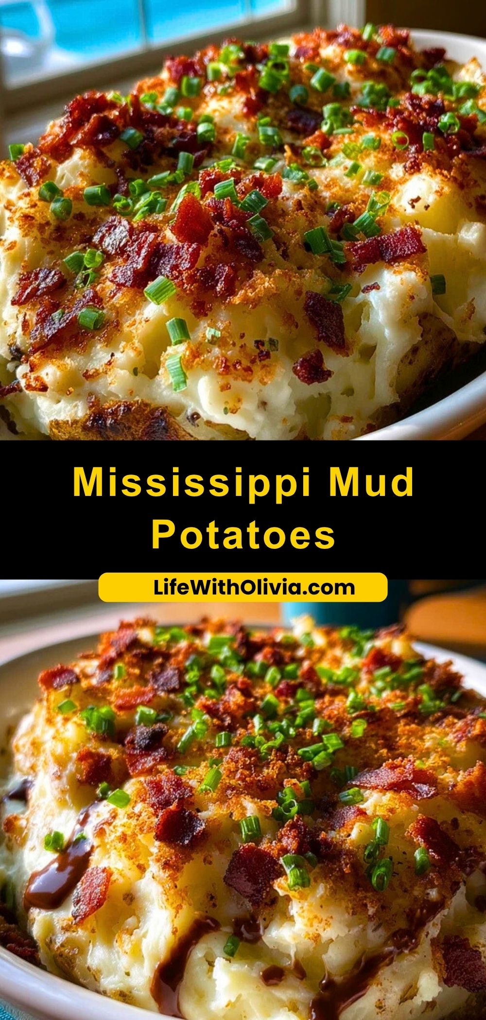 Mississippi Mud Potatoes are best served warm, straight out of the oven when the cheese is still gooey and the bacon is perfectly crisp. Pair them with grilled meats, baked chicken, or even a hearty salad to balance the richness.