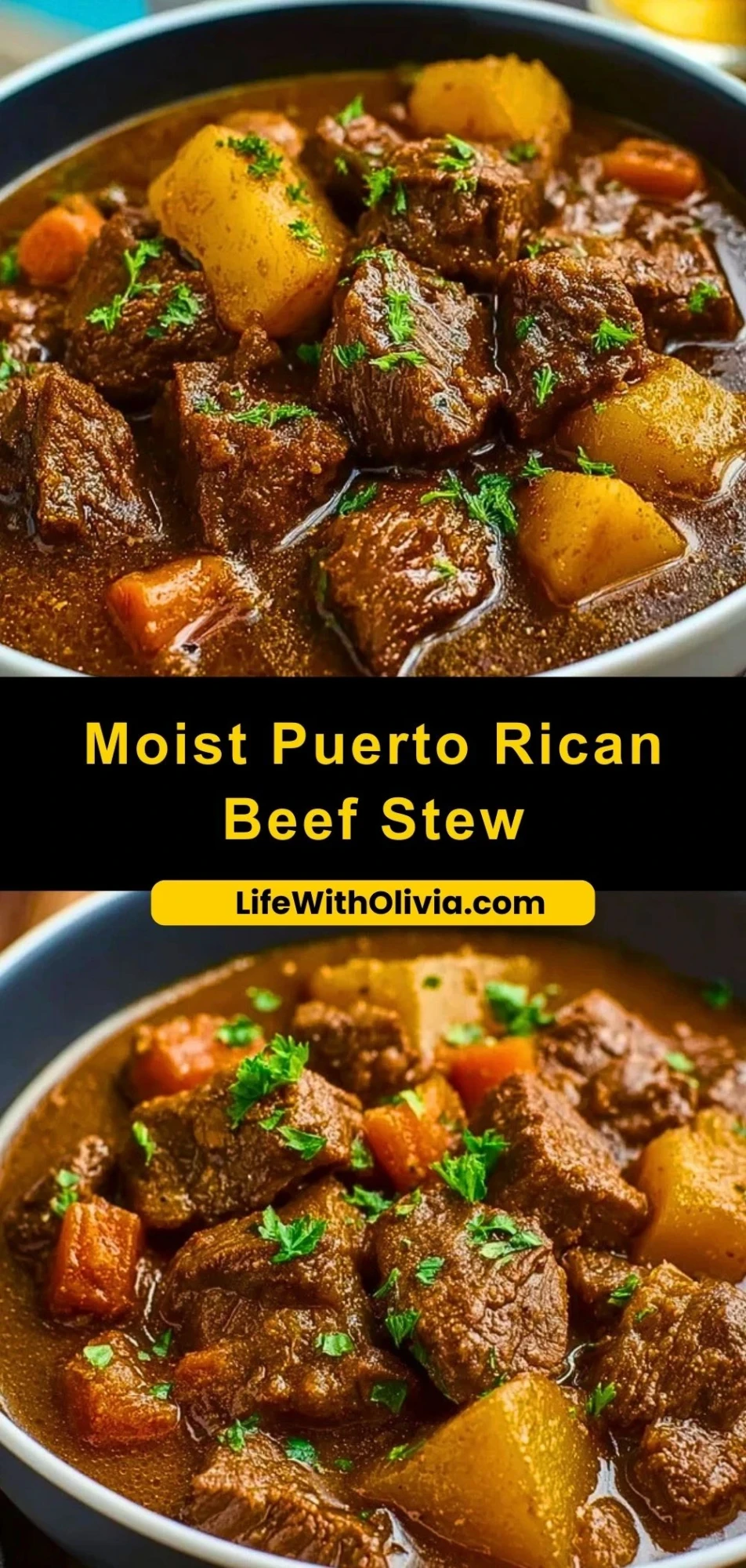 This Moist Puerto Rican Beef Stew (Carne Guisada) is a rich and flavorful comfort food classic. Tender beef simmers slowly with sofrito, spices, and hearty vegetables in a savory tomato broth. Perfect served over rice or with crusty bread for a cozy, satisfying meal.