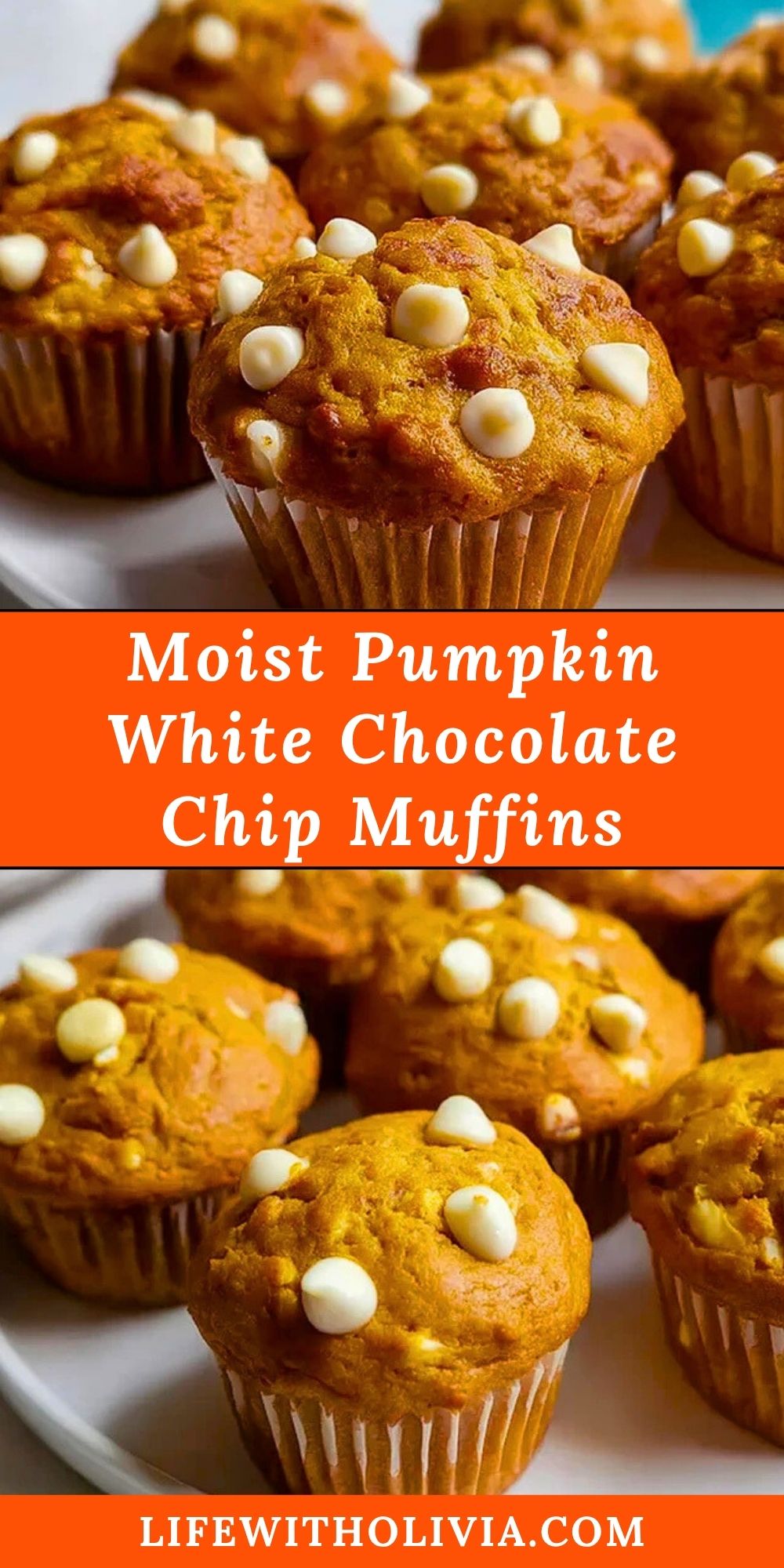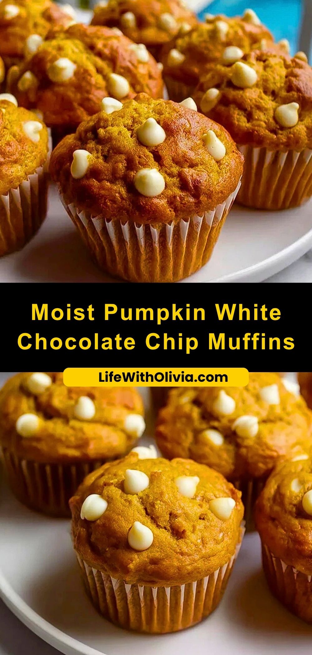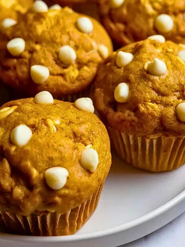 These Moist Pumpkin White Chocolate Chip Muffins are irresistibly soft, warmly spiced, and filled with sweet white chocolate chips. Perfect for fall mornings or holiday gatherings, they come together in one bowl and bake up beautifully domed and fluffy. A cozy treat for breakfast, snack, or dessert!