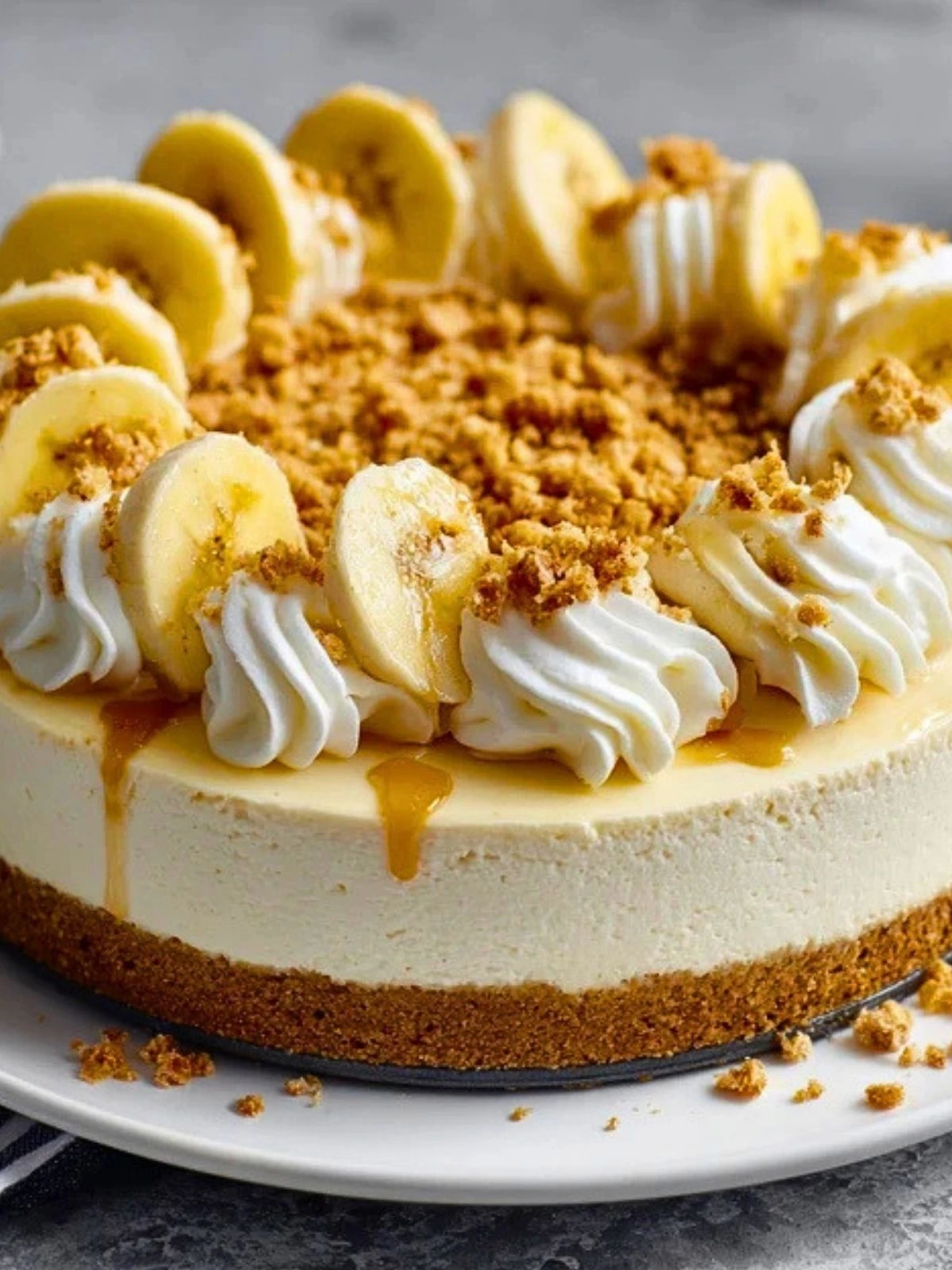 This No-Bake Banana Pudding Cheesecake is the ultimate creamy dessert that blends the nostalgic flavor of classic banana pudding with the rich, velvety texture of cheesecake. Every bite delivers smooth banana-infused filling, a buttery cookie crust, and a light whipped topping that melts effortlessly in your mouth.