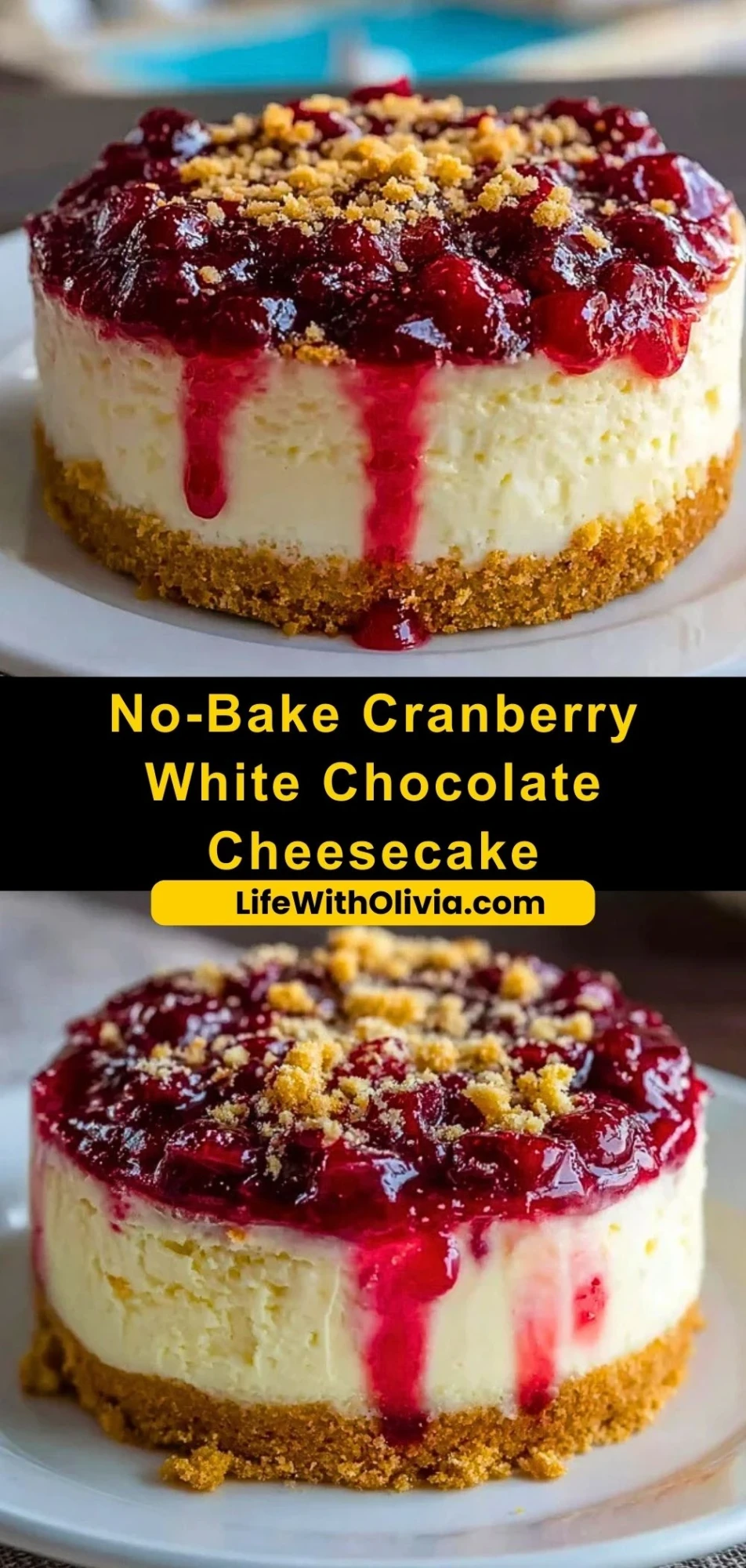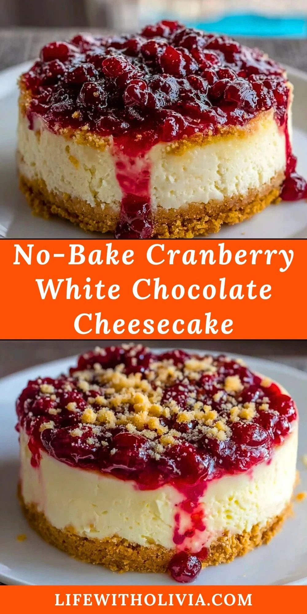 Keywords: no-bake cheesecake, cranberry dessert, holiday cheesecake, white chocolate cheesecake