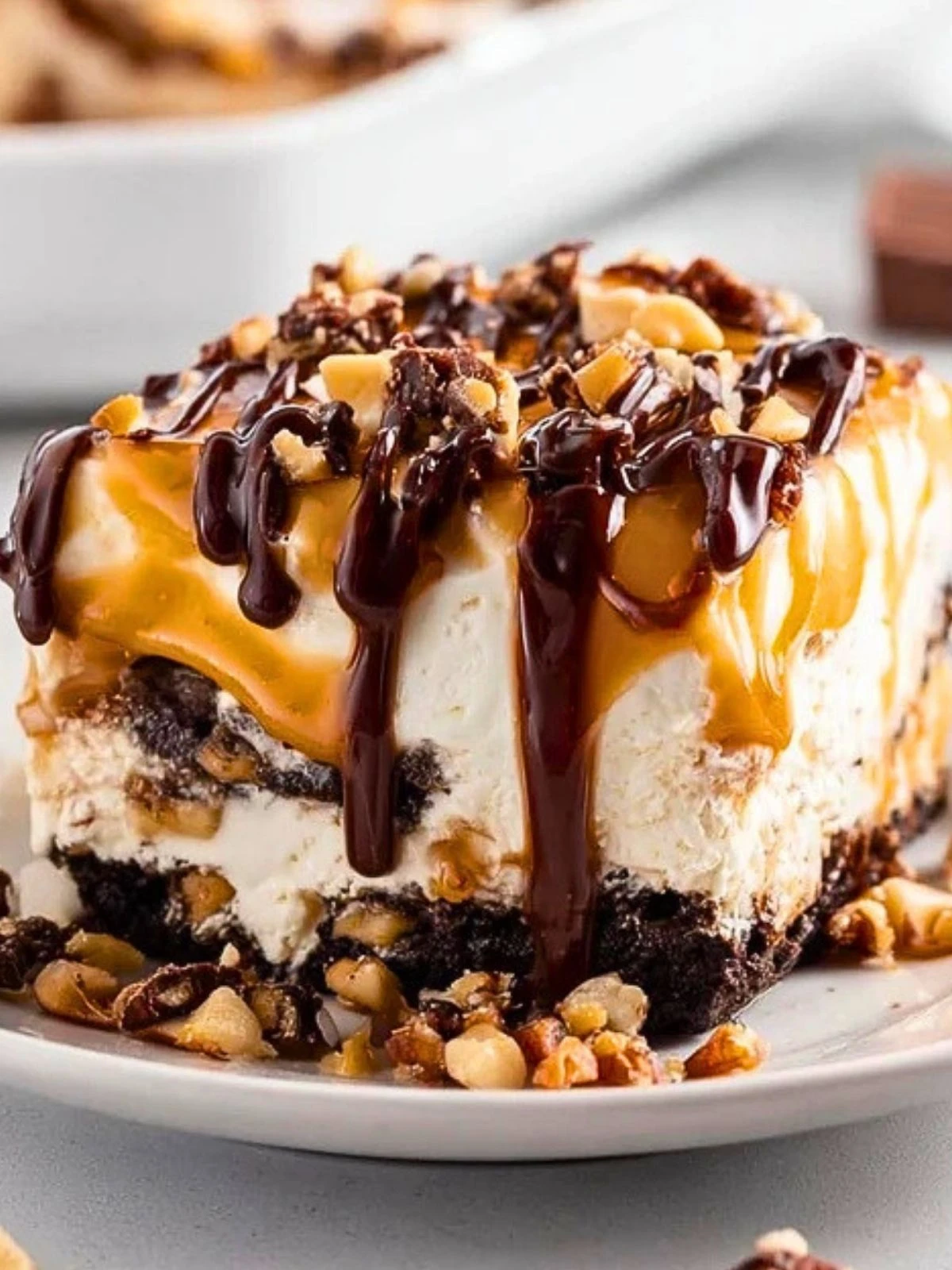 This dessert is best served well chilled straight from the refrigerator. For extra flair, add a final drizzle of caramel and chocolate just before serving, or scatter a few more chopped nuts over the top for crunch. It is a great make-ahead dessert for birthdays, cookouts, holidays, or when you need an easy sweet treat for a crowd.