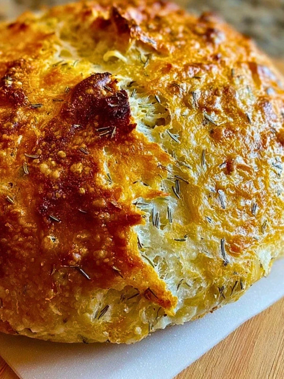 Crackly on the outside and soft on the inside, this No-Knead Dill Gouda Artisan Bread is an easy recipe that delivers bakery-style results at home. Packed with savory Gouda cheese and fragrant dill, this rustic loaf is perfect for quick breakfast slices, easy dinner sides, cozy soup pairings, snack boards, and homemade bread food ideas everyone will love.
