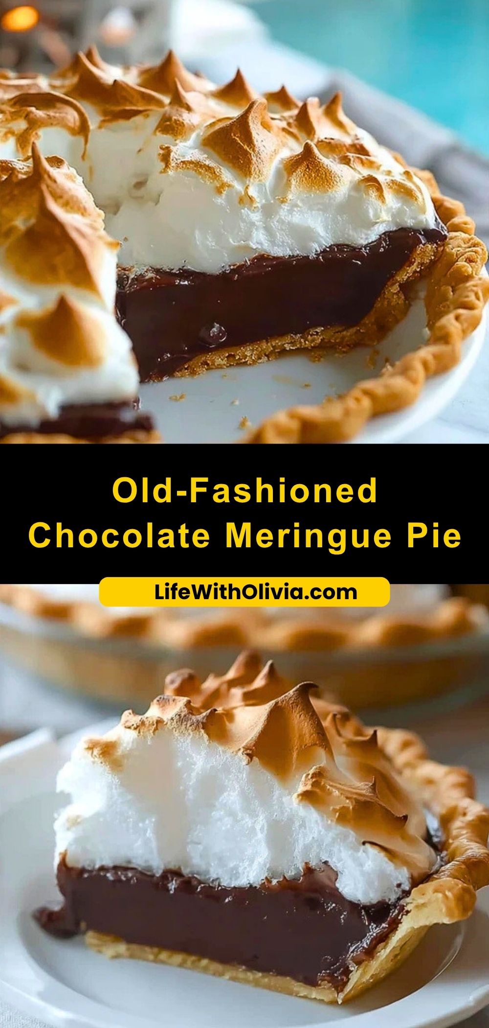 This Old-Fashioned Chocolate Meringue Pie is a Southern dessert classic featuring a buttery pie crust, rich chocolate custard, and fluffy meringue topping. Each layer brings nostalgic comfort and old-school charm, making it a timeless pie for holidays, family gatherings, or everyday indulgence.