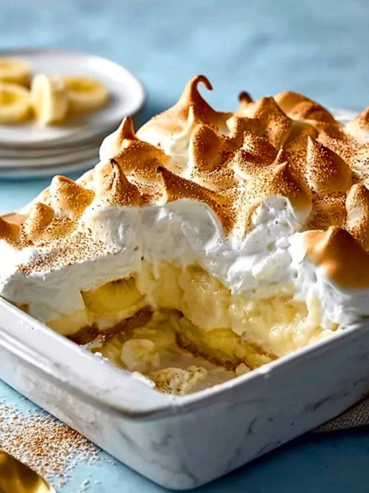 What makes this classic truly special is the fluffy, golden meringue topping that’s lightly toasted to perfection. Each bite delivers a beautiful balance of creamy, sweet, and slightly crisp textures that make it impossible to resist.