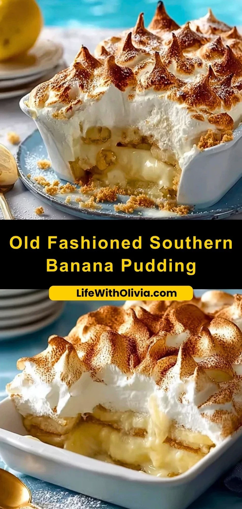 This Old Fashioned Southern Banana Pudding is a classic comfort dessert made with layers of creamy homemade custard, ripe bananas, and soft vanilla wafers, all topped with a fluffy golden meringue. It’s the perfect easy dessert for family gatherings, holiday dinners, or whenever you’re craving sweet comfort food. Whether you’re looking for easy dessert ideas, traditional Southern recipes, or crowd-pleasing food ideas, this banana pudding delivers rich flavor and nostalgic charm in every bite.
