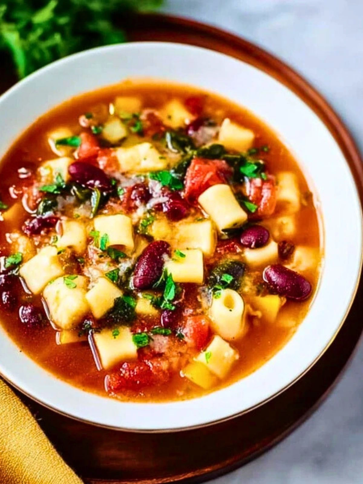This soup is best served hot and garnished with a sprinkle of freshly grated Parmesan cheese and chopped parsley for added brightness. Pair it with warm breadsticks or a side salad for a complete Olive Garden-style meal at home.