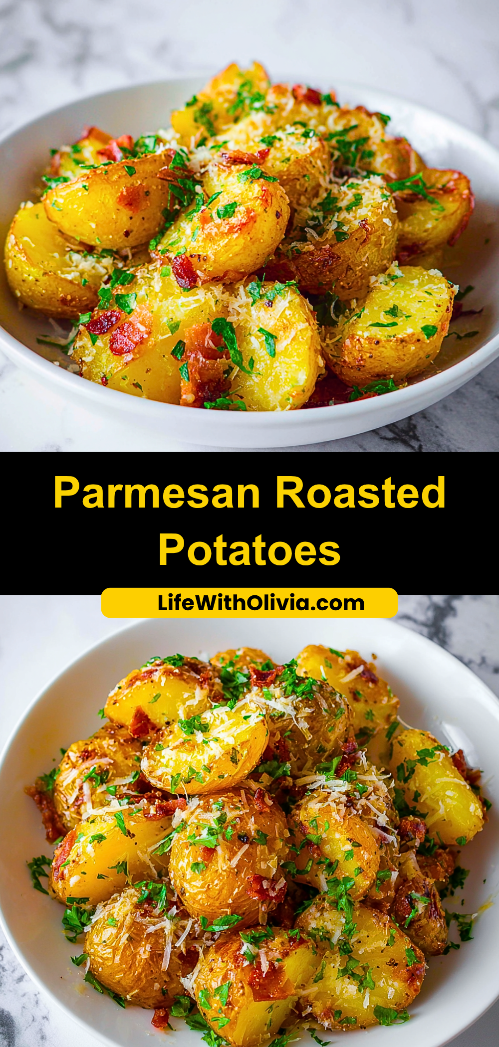 Golden and crisp on the outside, tender and buttery inside — Parmesan Roasted Potatoes are the kind of side dish that steal the show. Whether you’re pairing them with a juicy steak, grilled chicken, or enjoying them straight from the sheet pan, these potatoes deliver a salty, garlicky, cheesy bite every time.