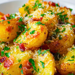 Golden and crisp on the outside, tender and buttery inside — Parmesan Roasted Potatoes are the kind of side dish that steal the show. Whether you’re pairing them with a juicy steak, grilled chicken, or enjoying them straight from the sheet pan, these potatoes deliver a salty, garlicky, cheesy bite every time.