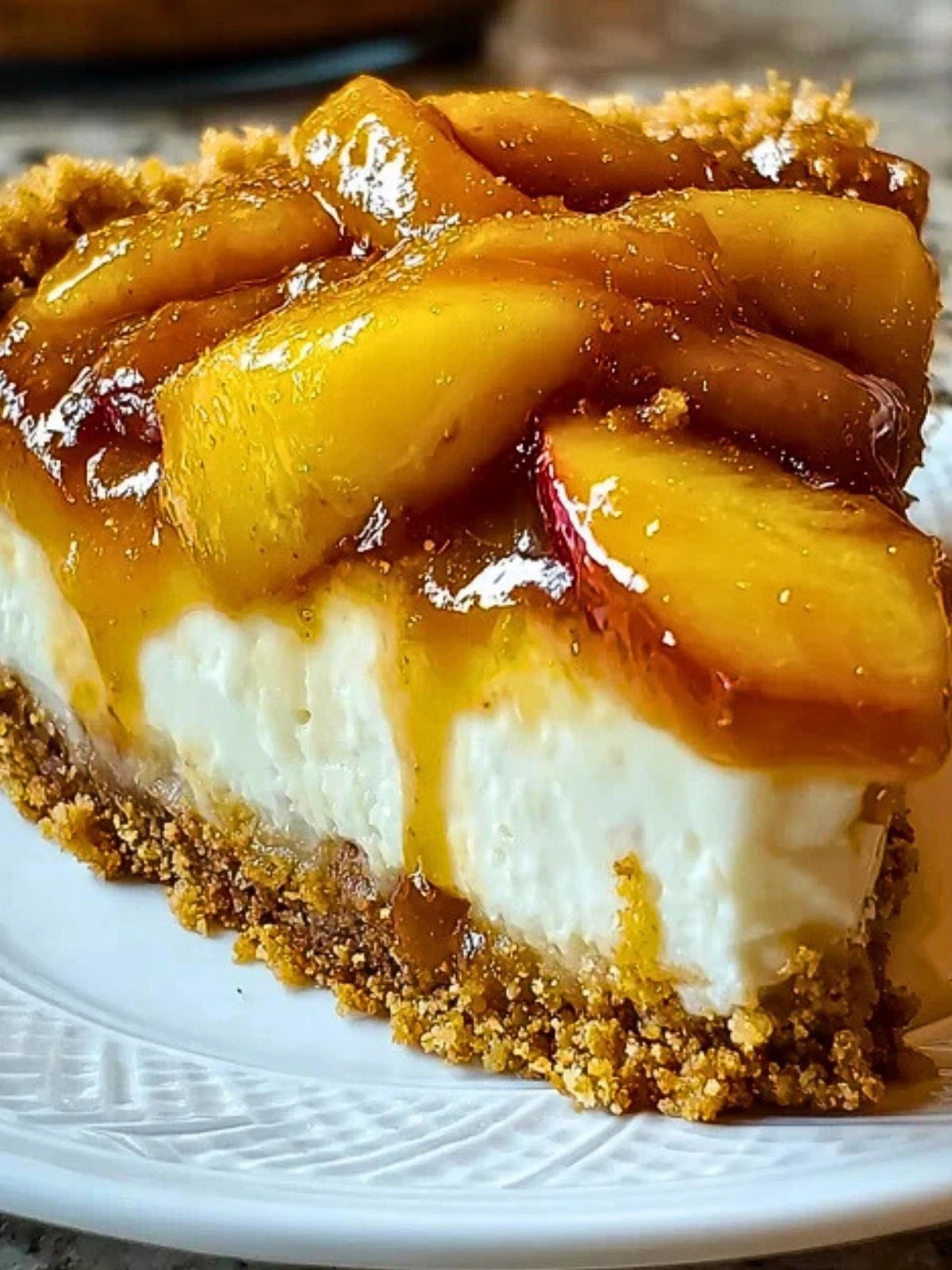 Spoon the cooled peach topping generously over the chilled cheesecake. Slice and serve chilled or at room temperature for maximum indulgence.