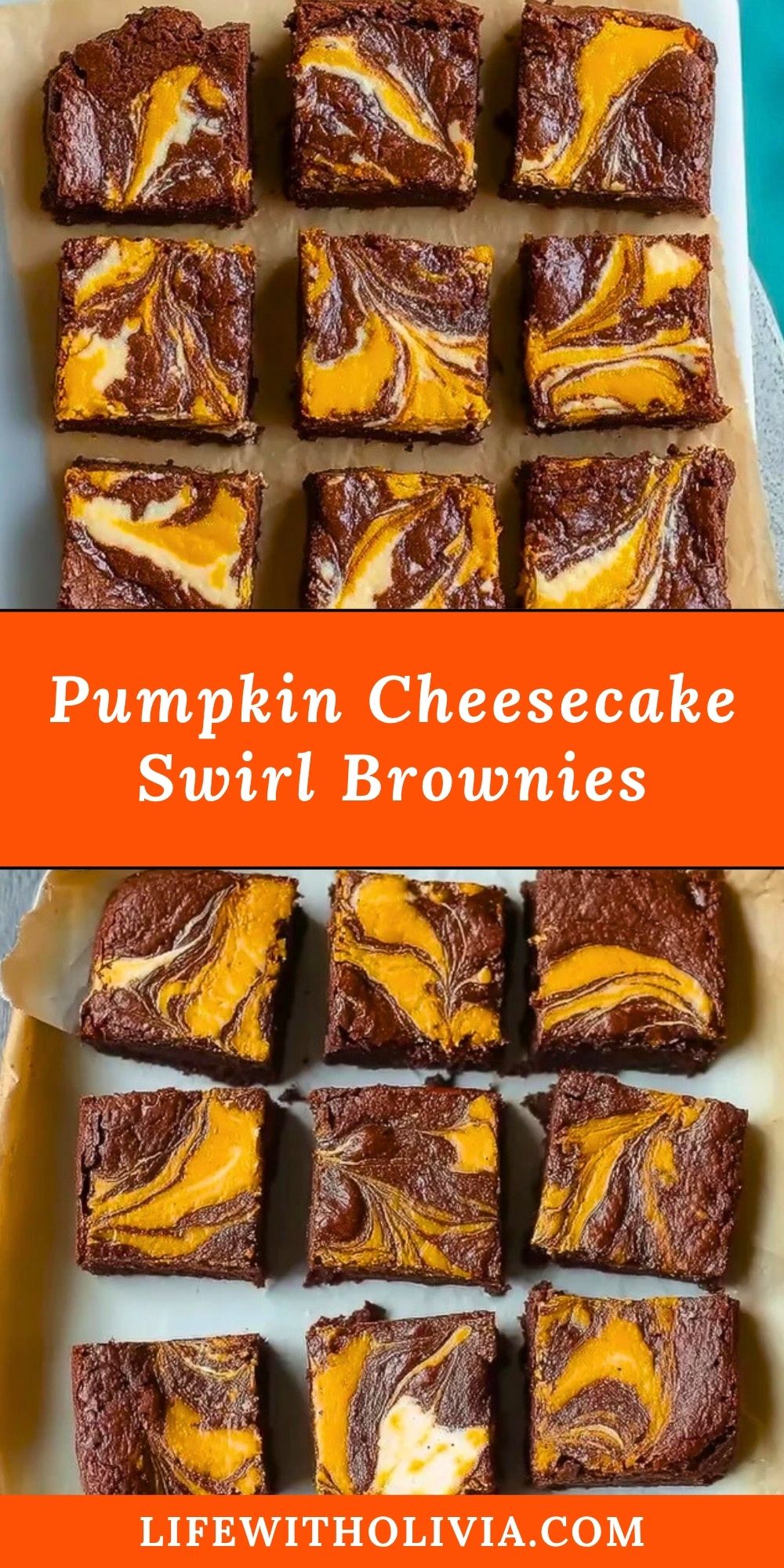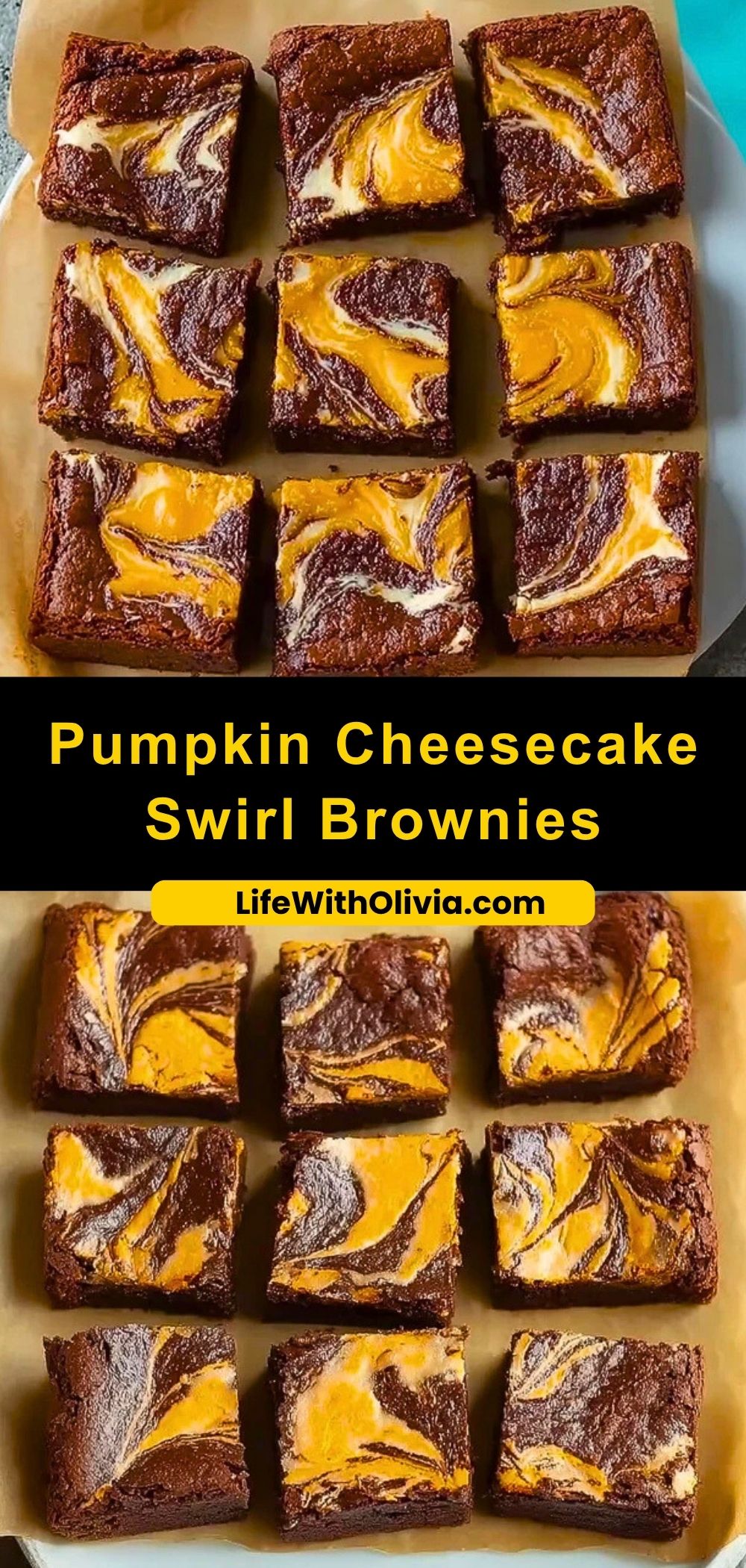 Keywords: pumpkin cheesecake swirl brownies, fall brownies, pumpkin dessert
