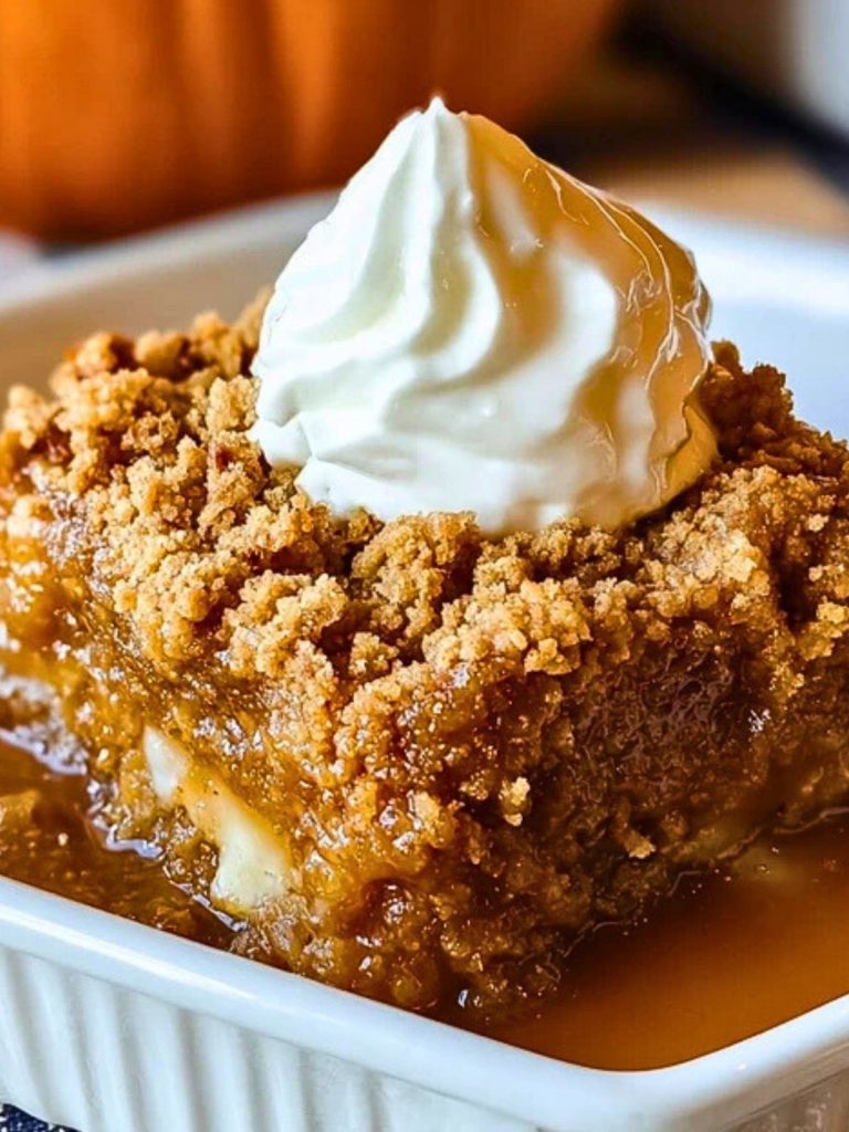 Serve your Pumpkin Dump Cake slightly warm for a comforting dessert straight from the oven. The warm spices and gooey center pair beautifully with a dollop of whipped cream or a generous scoop of vanilla ice cream. For a gourmet touch, try a drizzle of caramel sauce or a sprinkle of cinnamon sugar.