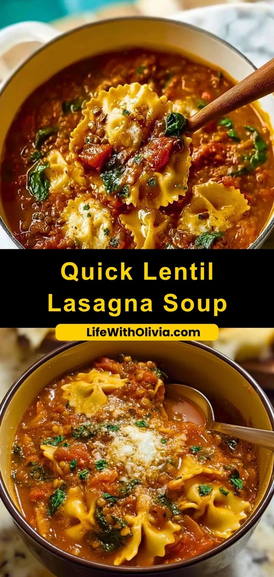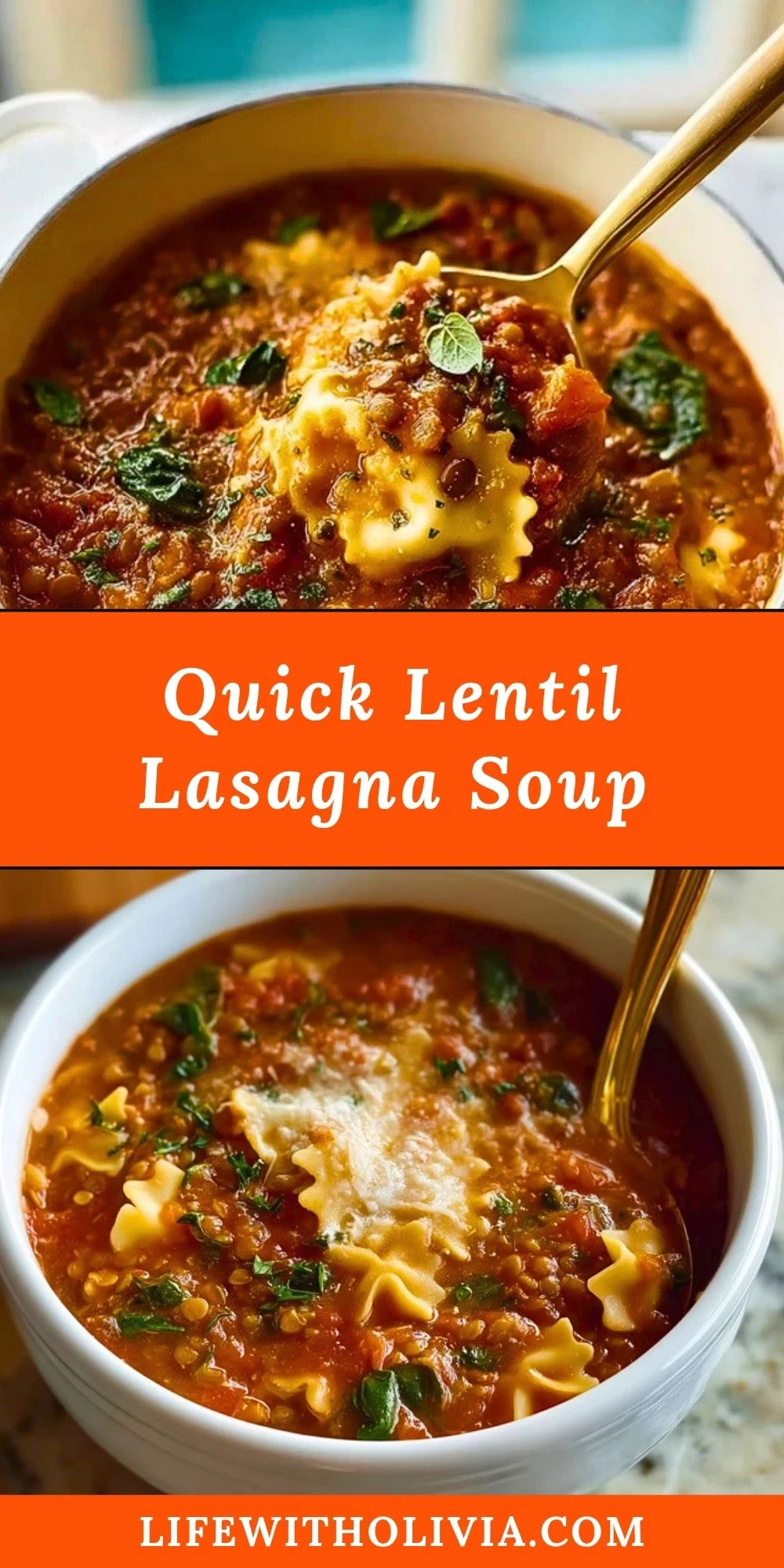 Cozy up with this quick lentil lasagna soup, a comforting and easy dinner packed with rich tomato flavor, tender lentils, and hearty pasta. This easy recipe brings all the classic lasagna flavors into a one-pot meal, making it perfect for busy weeknights, healthy dinner ideas, and satisfying comfort food cravings.