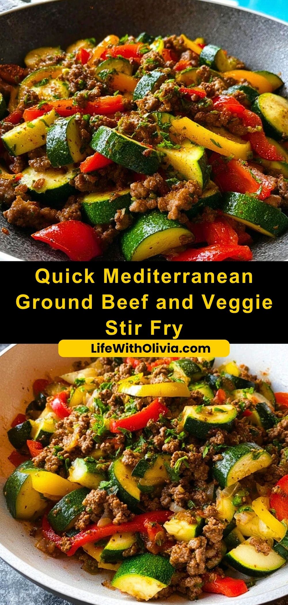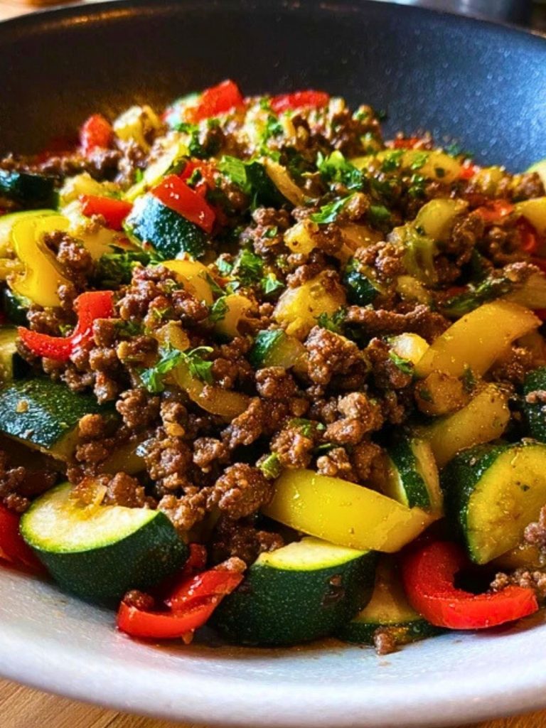 A vibrant and healthy one-pan meal featuring lean ground beef, sautéed zucchini, sweet bell peppers, and bold Mediterranean herbs. Ready in under 30 minutes—perfect for busy weeknights or meal prepping ahead.