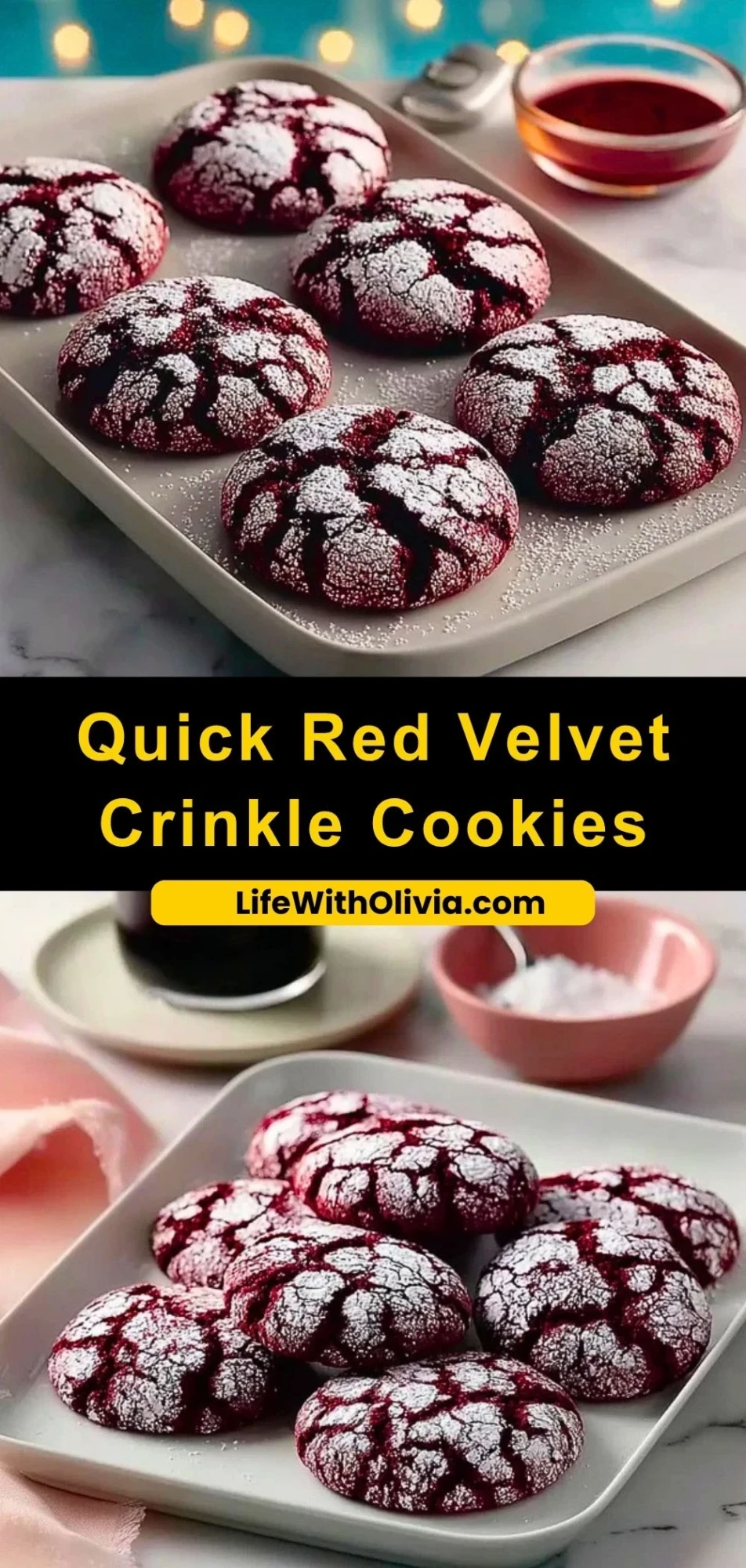 Keywords: red velvet cookies, crinkle cookies, easy dessert, quick baking, holiday cookies