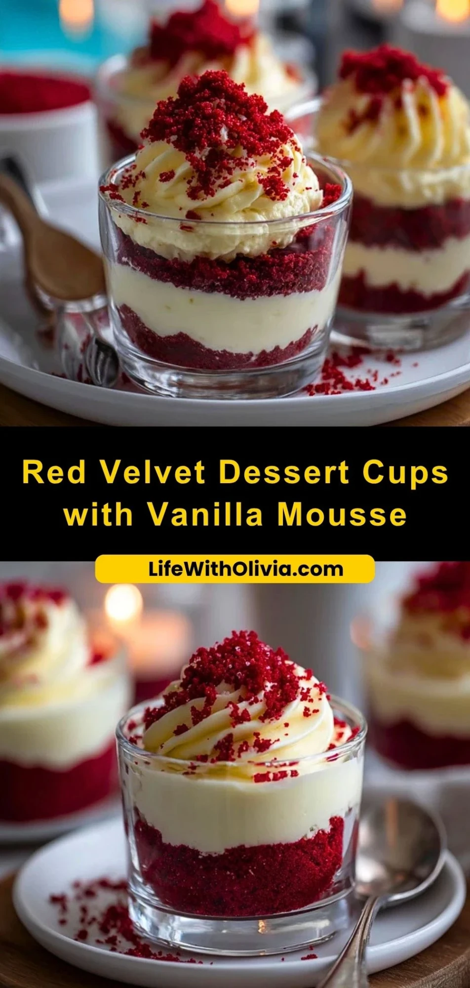 Indulge in these Red Velvet Dessert Cups with Vanilla Mousse, a perfect easy dessert that combines moist red velvet cake layers with a light and creamy vanilla mousse. This no-fuss layered dessert is ideal for dinner ideas, holiday treats, or sweet snack cravings. Whether you’re looking for quick dessert ideas or elegant food ideas, these individual cups deliver rich flavor, beautiful presentation, and a melt-in-your-mouth experience.