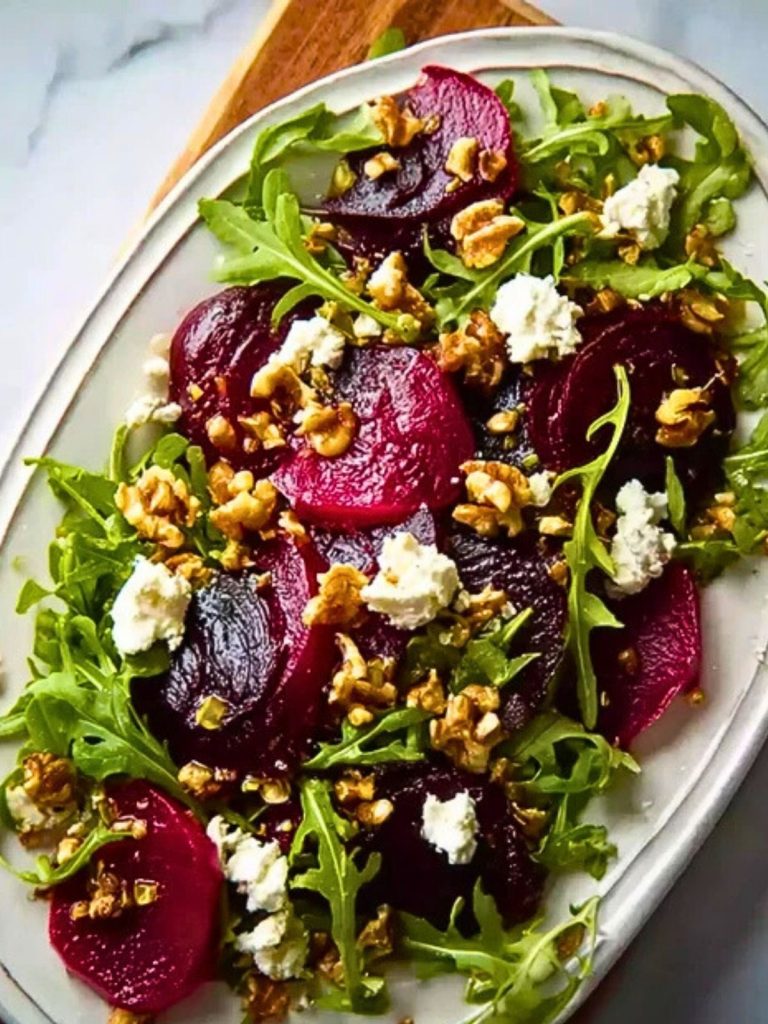 Whether you’re preparing a quick weeknight dinner or a centerpiece salad for a gathering, this dish delivers on both presentation and flavor. The sweetness of the beets pairs beautifully with the creamy goat cheese and the nutty bite of toasted walnuts, while arugula provides a fresh, peppery balance that makes every bite dynamic.
