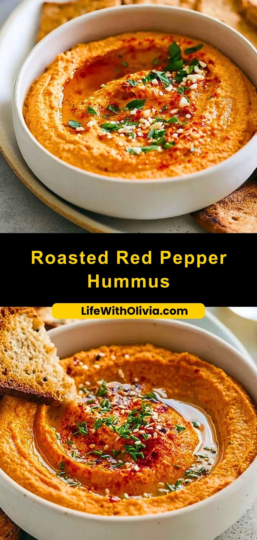 If you loved this Roasted Red Pepper Hummus, here are some other dips and spreads from Life With Olivia you might want to try next: