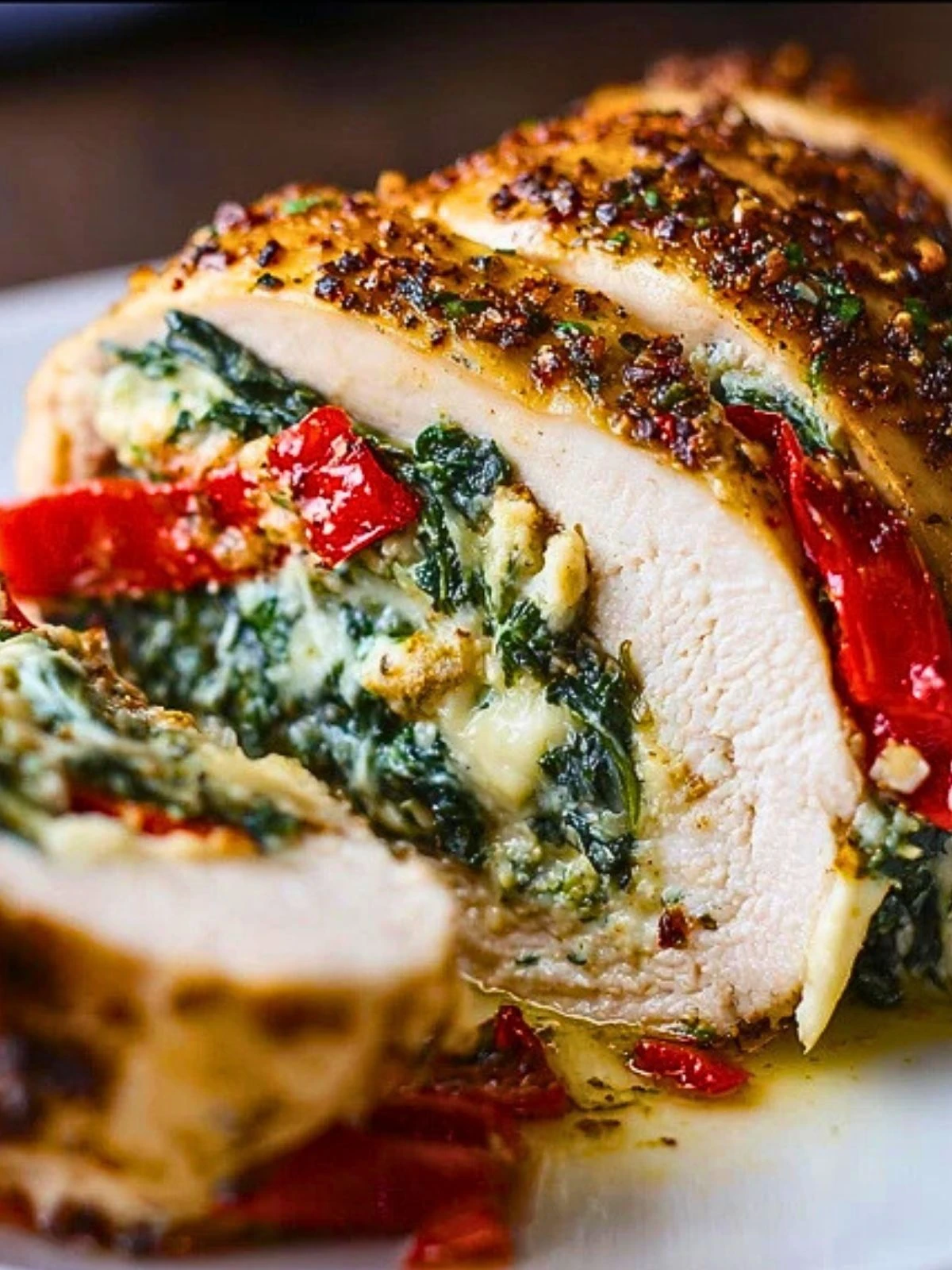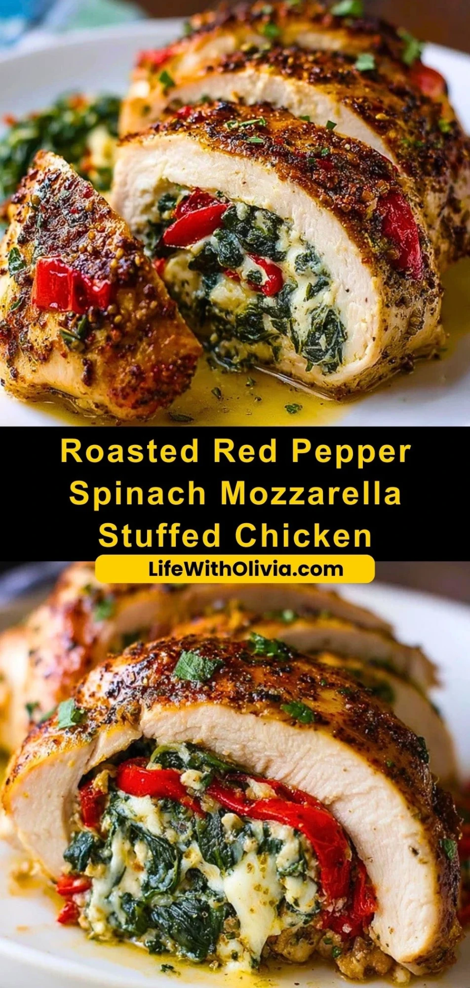 Imagine slicing into a juicy, golden chicken breast and revealing a colorful medley of creamy mozzarella, sautéed spinach, and sweet roasted red peppers. This Roasted Red Pepper Spinach Mozzarella Stuffed Chicken is a weeknight dinner with weekend flair—simple enough for a family meal, yet impressive enough to serve guests.