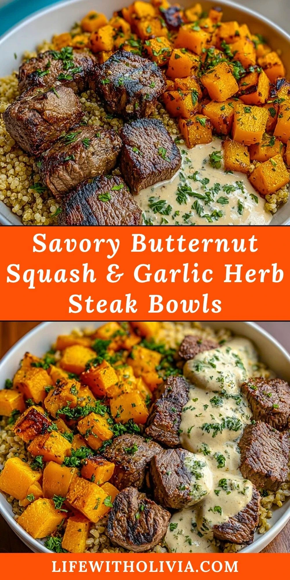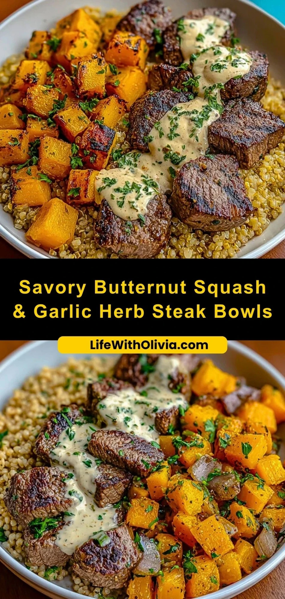 Savory Butternut Squash & Garlic Herb Steak Bowls