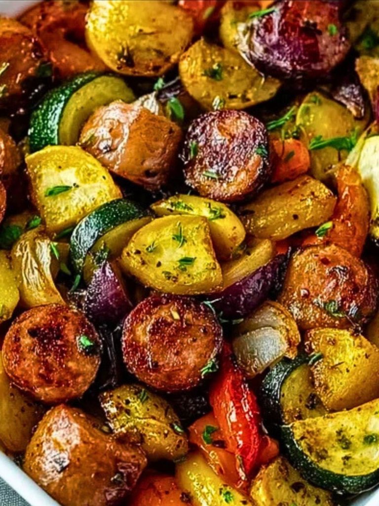 When weeknights get hectic, this Sheet Pan Sausage & Veggies recipe is your new best friend. It’s colorful, flavorful, and comes together in under an hour with barely any cleanup. Juicy sausage slices are roasted to perfection alongside tender zucchini, peppers, potatoes, and onions—all tossed in savory herbs and olive oil. It’s hearty enough to satisfy the whole family, yet healthy enough to feel good about second helpings.