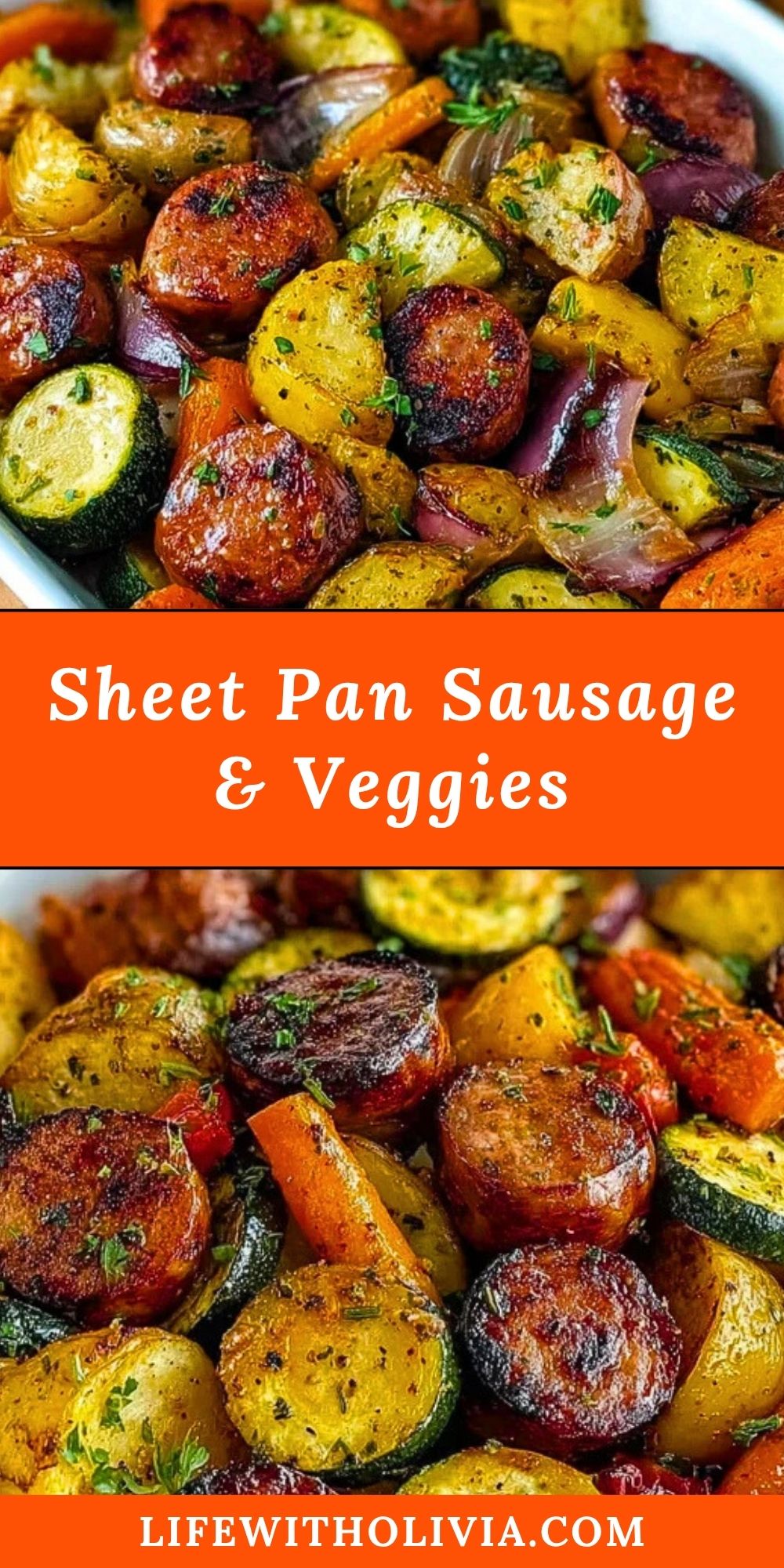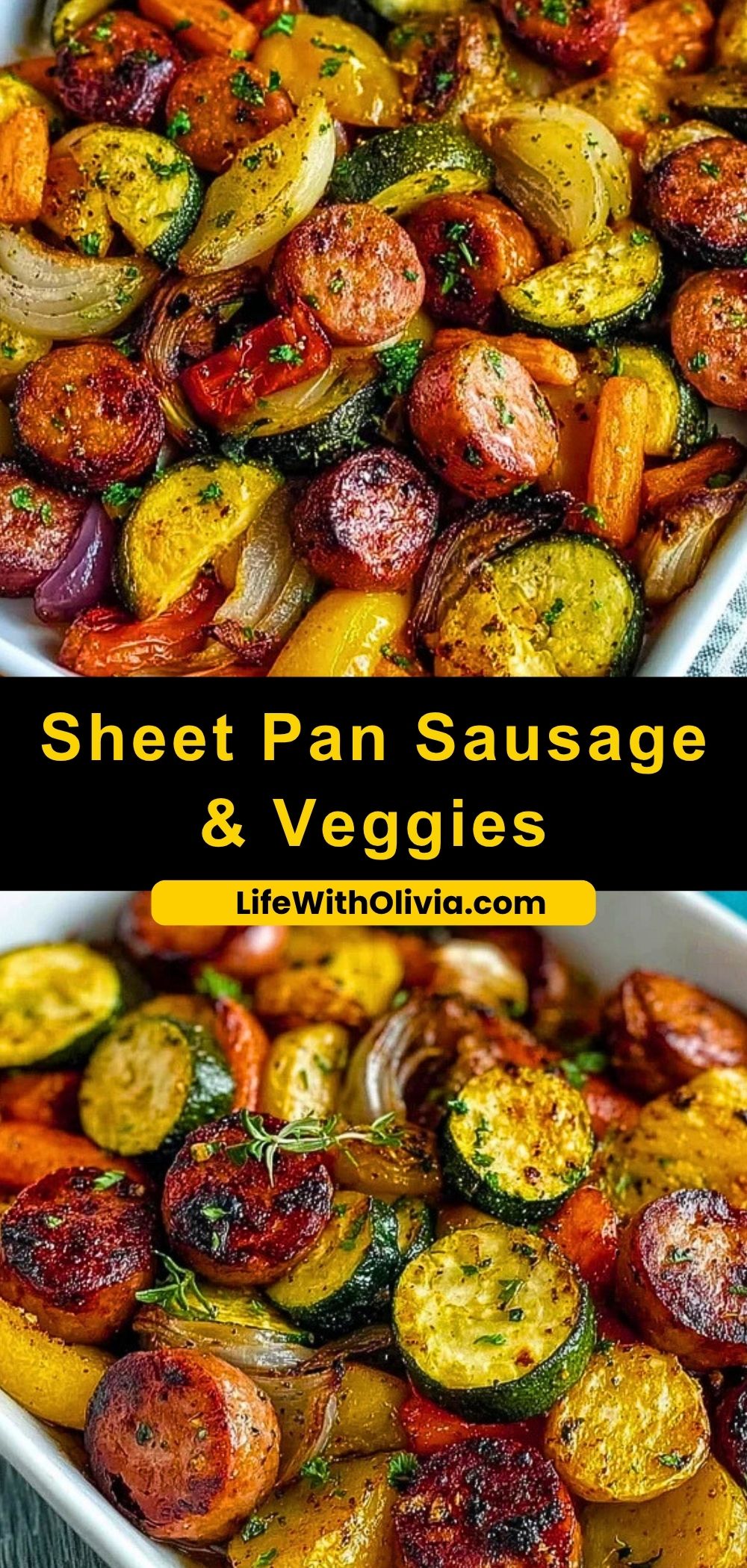 Keywords: one-pan, roasted veggies, easy dinner, smoked sausage