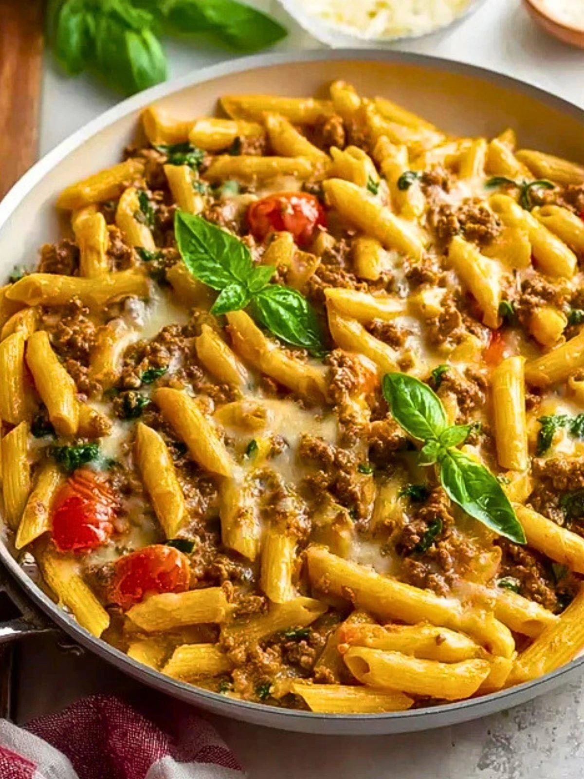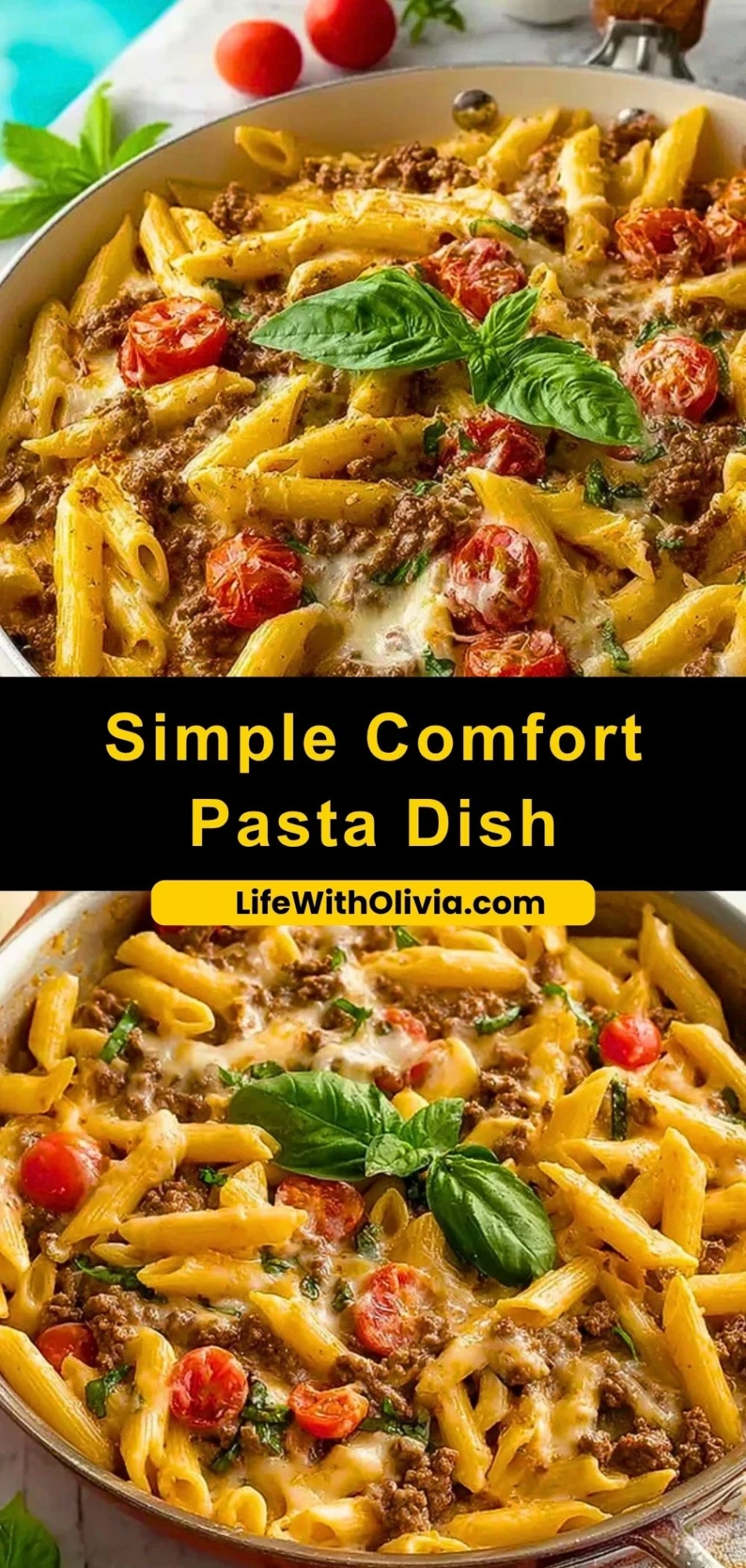 There’s something deeply satisfying about a warm bowl of pasta loaded with rich flavors, melted cheese, and hearty ingredients. This simple comfort pasta dish brings together tender penne, savory ground beef, and a creamy, cheesy finish that feels like a hug in every bite.