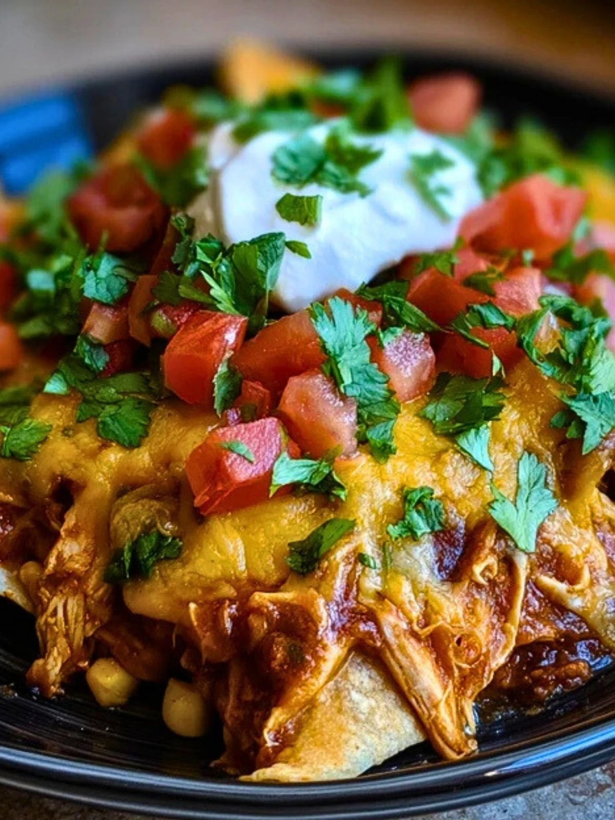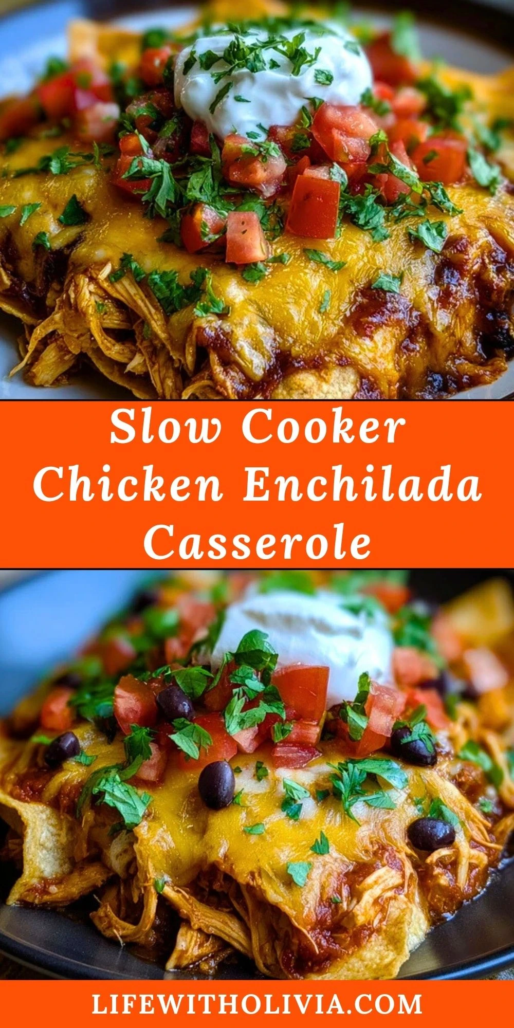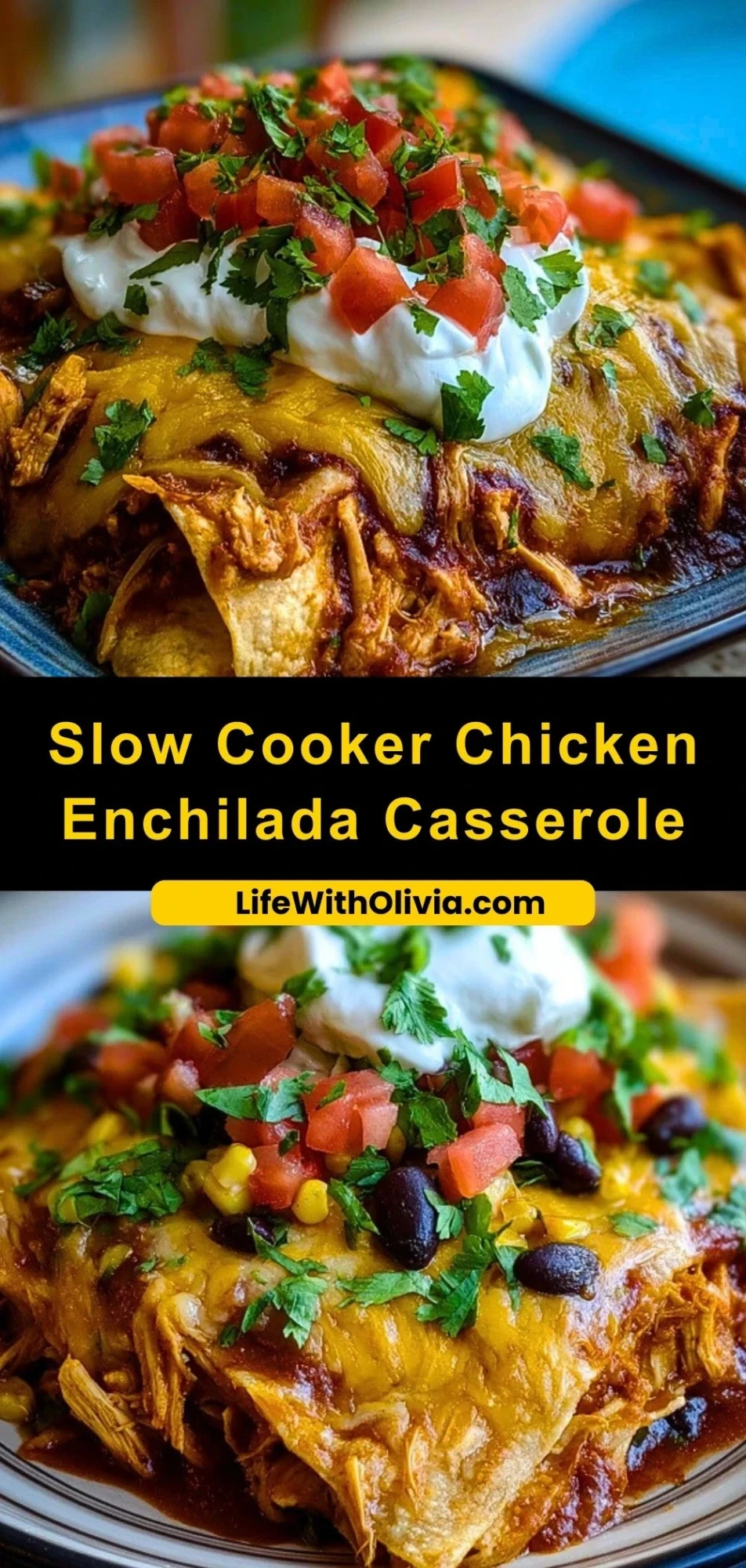 This casserole is best served hot right out of the slow cooker, when the cheese is still gooey and everything is infused with rich enchilada flavor. Top each serving with optional garnishes like fresh cilantro, diced tomatoes, avocado slices, or a scoop of sour cream for an extra creamy finish.