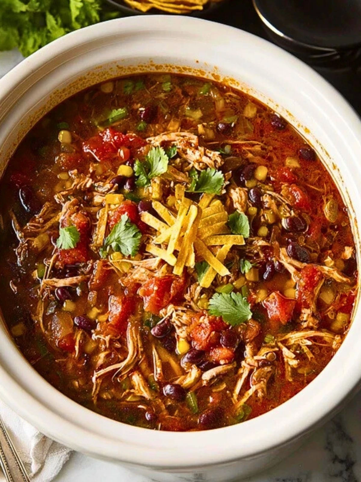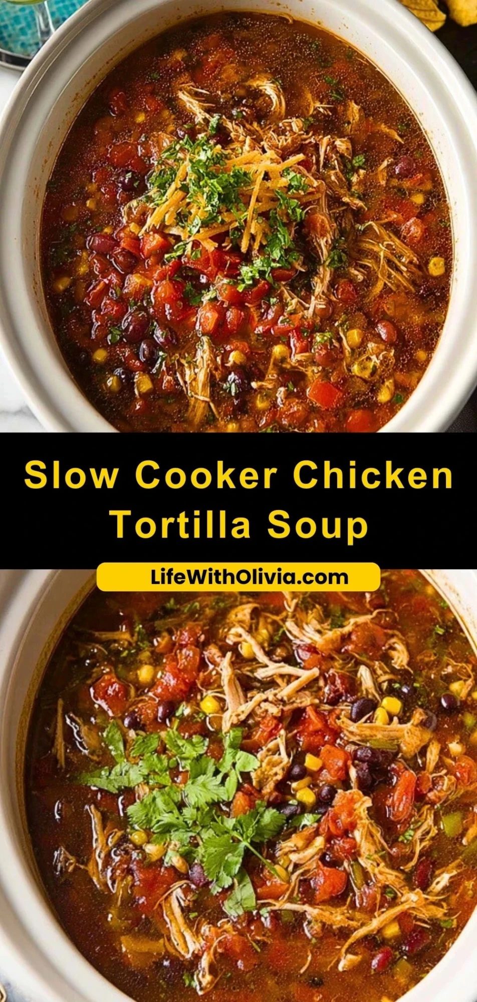 Keywords: chicken tortilla soup, crockpot recipe, easy dinner, slow cooker soup, healthy soup