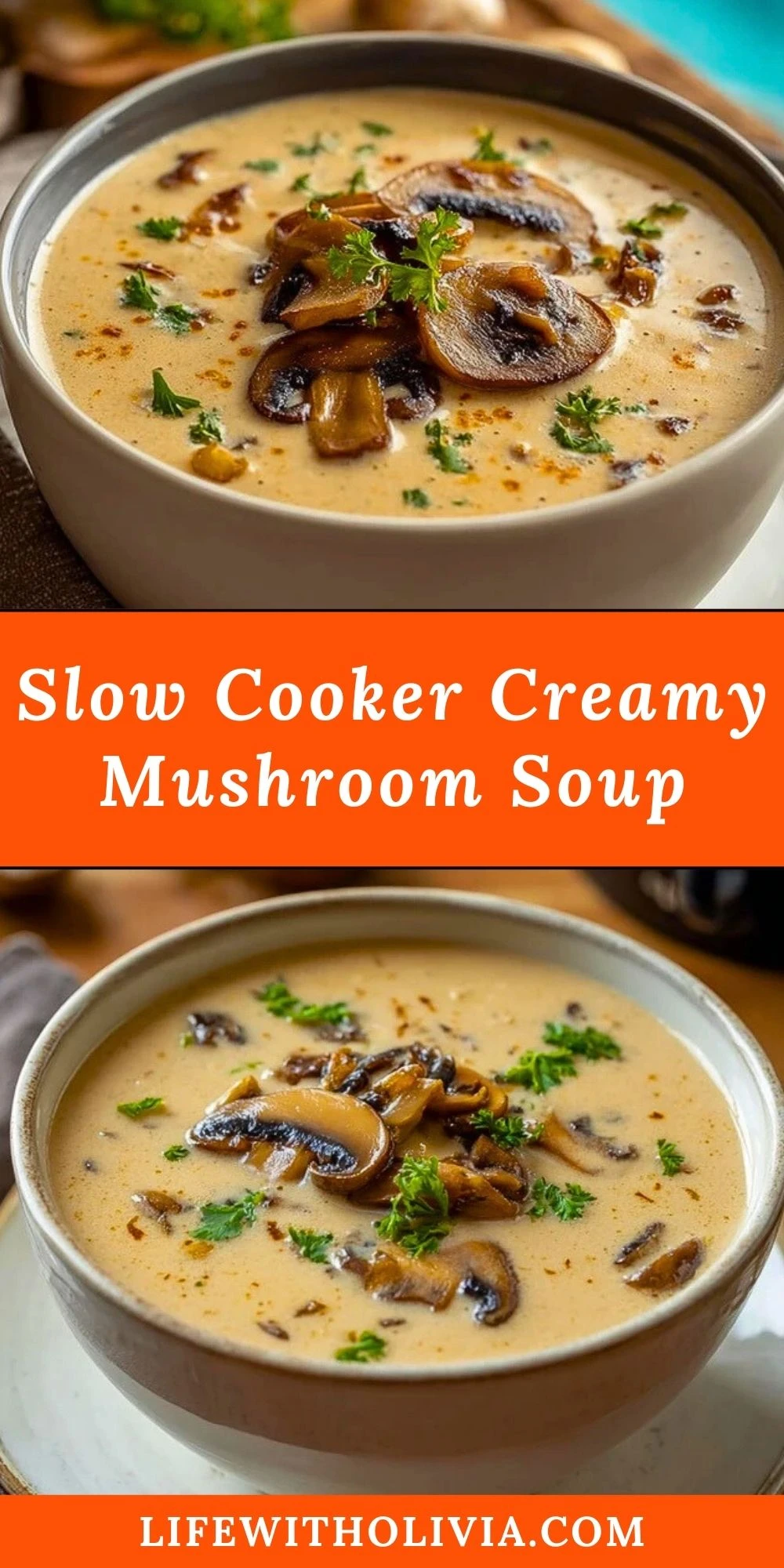 Keywords: creamy mushroom soup, slow cooker soup, vegetarian soup
