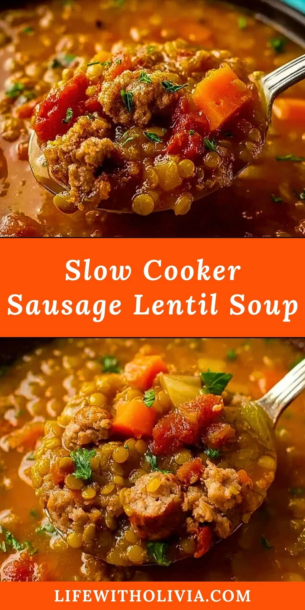 Keywords: Lentil soup, sausage lentil soup, slow cooker meals