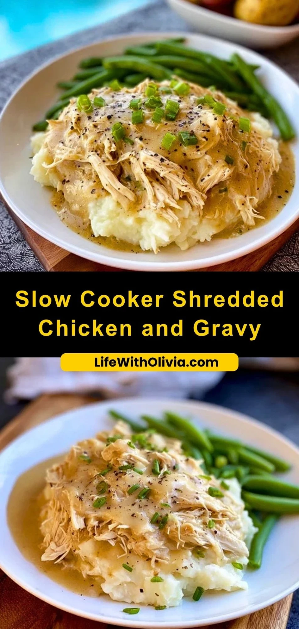 Slow Cooker Shredded Chicken and Gravy is best served hot over a bed of mashed potatoes, egg noodles, or even white rice. It also pairs well with steamed vegetables or warm dinner rolls.