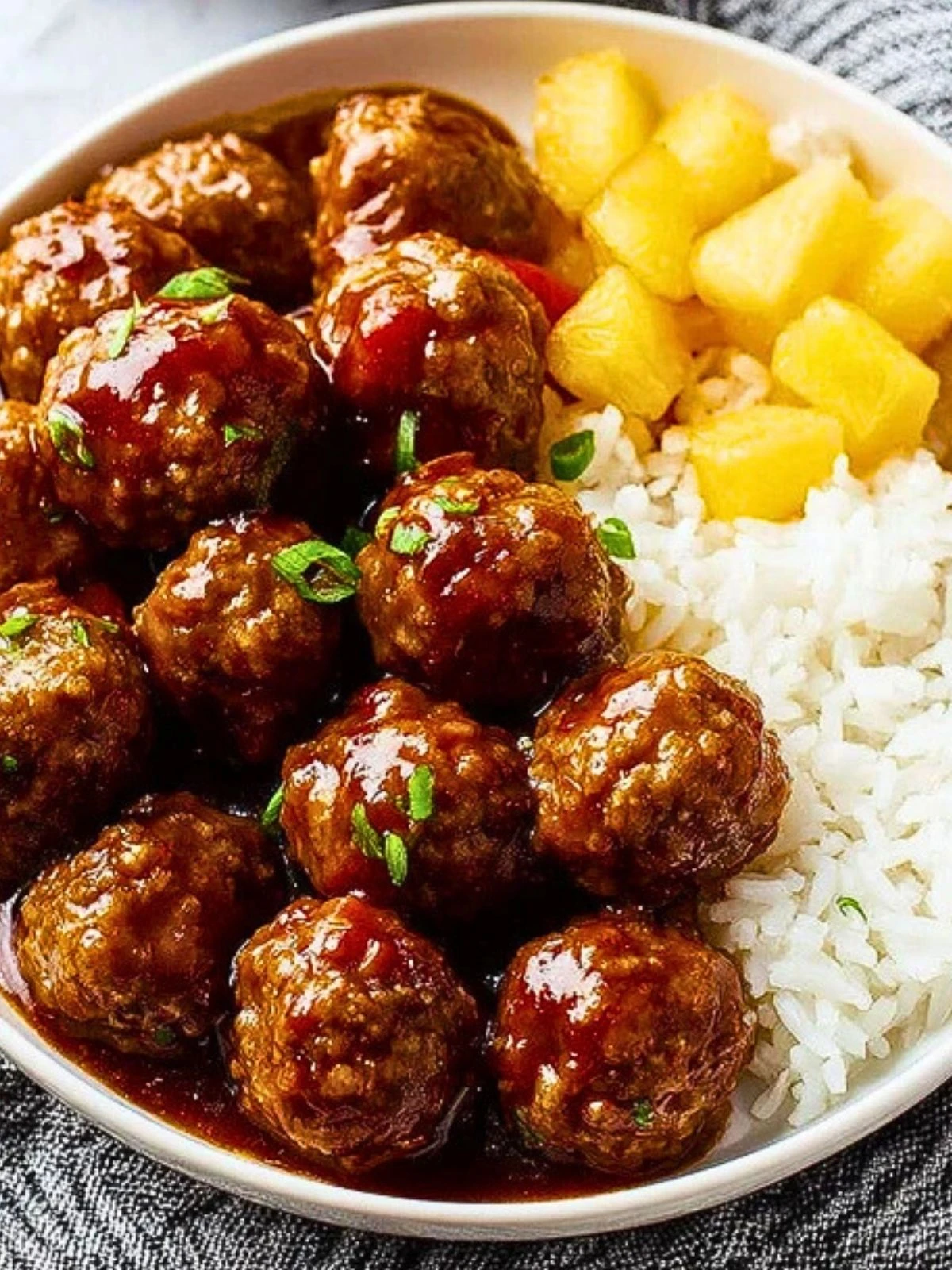 This recipe is a weeknight lifesaver and a weekend crowd-pleaser. Whether served over fluffy white rice or paired with roasted veggies, the combo of juicy meatballs and a zesty sauce made from pantry staples hits all the right notes. Plus, the pineapple chunks add a juicy, fruity burst that balances the tang beautifully.