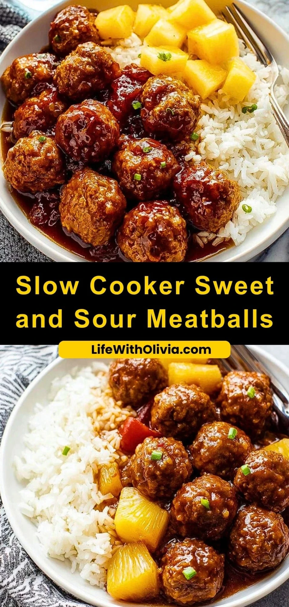 Slow Cooker Sweet and Sour Meatballs are a delicious fusion of sweet, tangy, and savory flavors that make for the perfect comforting dinner or crowd-pleasing party appetizer. Tender meatballs slow-cooked in a glossy, flavorful sauce with pineapple and peppers—served best over rice or noodles.