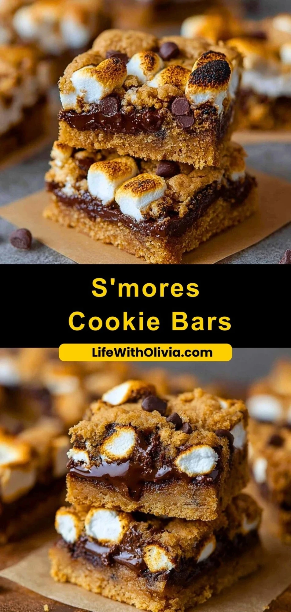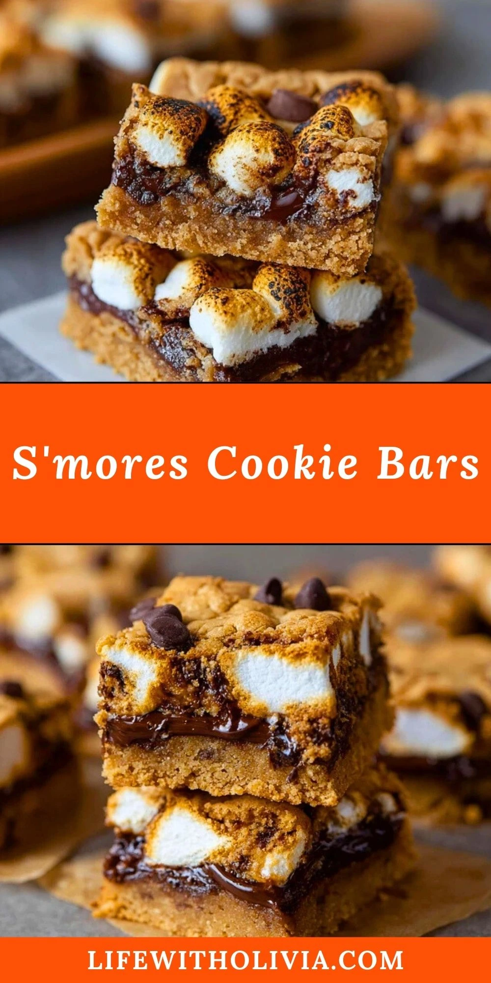 Keywords: s’mores cookie bars, marshmallow chocolate bars, campfire dessert